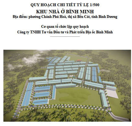 CÔNG BỐ CÔNG KHAI ĐỒ ÁN QUY HOẠCH CHI TIẾT (TỶ LỆ 1/500) KHU NHÀ Ở BÌNH MINH, PHƯỜNG CHÁNH PHÚ HÒA, THỊ XÃ BẾN CÁT, TỈNH BÌNH DƯƠNG