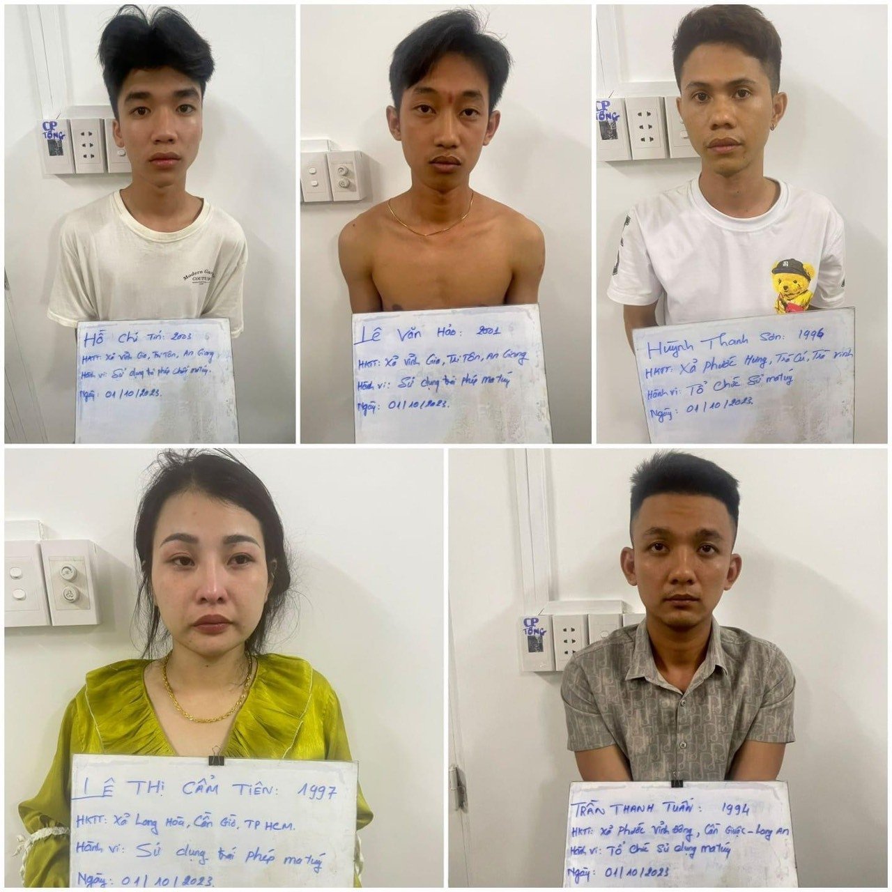 Theo đó, vào sáng cùng ngày, trong quá trình kiểm tra hành chính Công an phường Mỹ Phước phát hiện, bắt quả tang nhóm gồm 05 đối tượng đang tổ chức sử dụng ma túy tại phòng trọ số 1, nhà trọ K.Y thuộc khu phố 3, phường Mỹ Phước. Tại thời điểm kiểm tra, nhiều đối tượng trong nhóm này đang còn "phê" ma túy. Ngoài ra, 01 túi nylong nghi chứa ma túy cùng nhiều dụng cụ sử dụng ma túy cũng đã được thu giữ. Hiện vụ việc đang được Công an thị xã tiếp tục điều tra làm rõ.