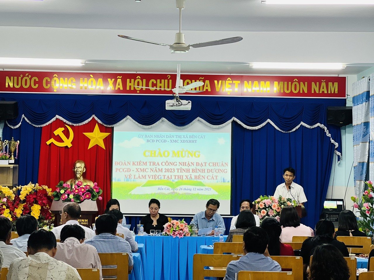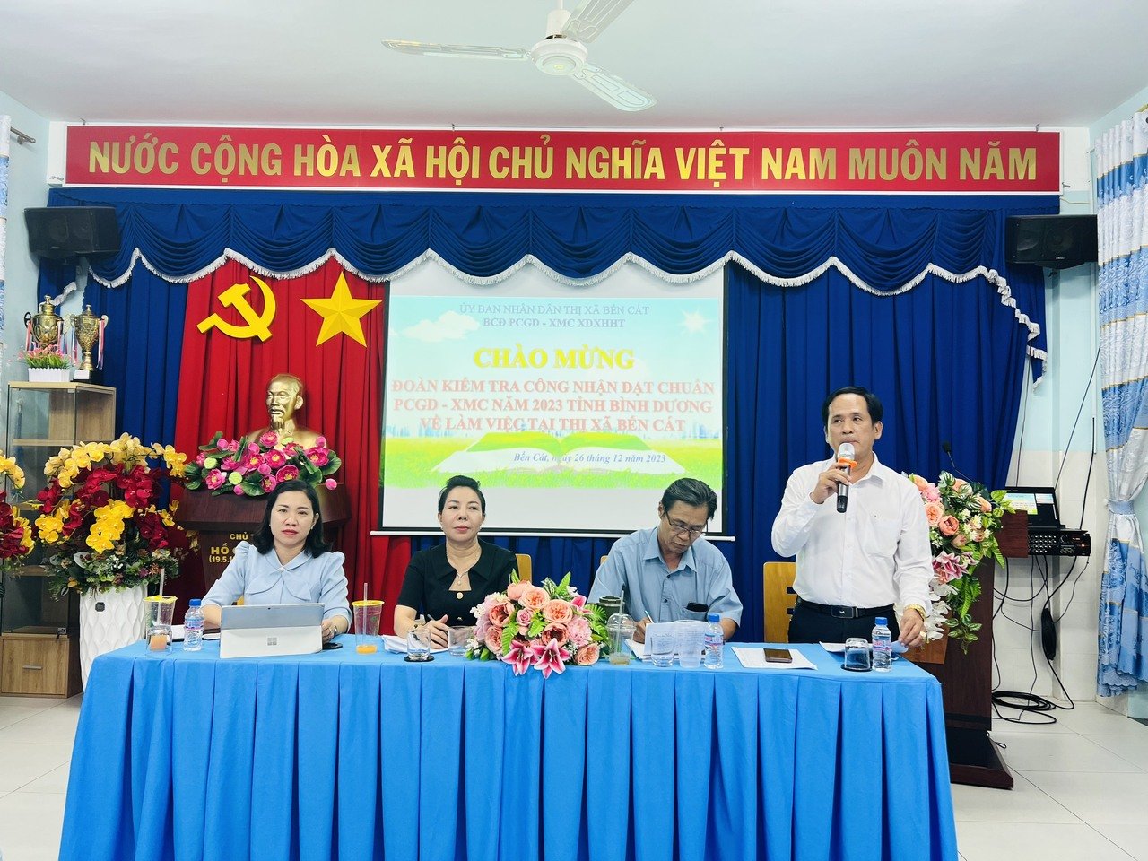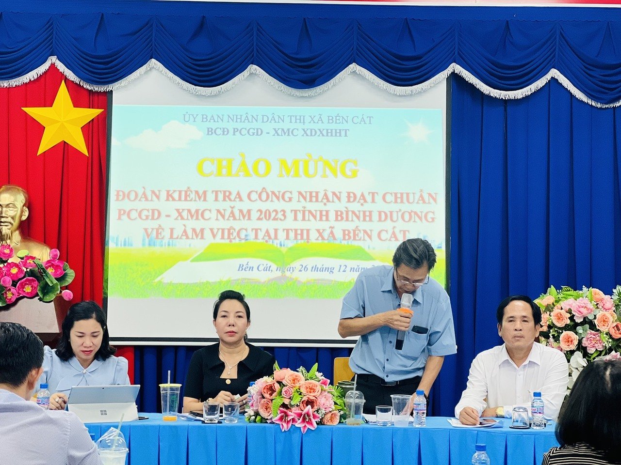 Chiều ngày 26/12/2023, Đoàn kiểm tra công nhận phổ cập giáo dục, xóa mù chữ của Sở Giáo dục và Đào tạo tỉnh Bình Dương về kiểm tra công tác phổ cập giáo dục, xóa mù chữ (PCGD, XMC) năm 2023 của thị xã Bến Cát.