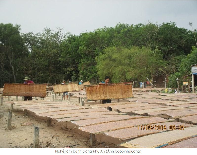 Nghề bánh tráng ở Phú An có cách đây hàng trăm năm. Sau bao nhiêu thăng trầm, hiện nay nghề làm bánh tráng đang phát triển mạnh trở lại. Nghề làm bánh tráng tập trung ở các ấp: Bến Liễu, Phú Thuận, Bến Giảng. Bánh tráng của Phú An được các thương lái bỏ mối ở chợ Thủ Dầu Một và ở Sài Gòn. Bánh tráng Phú An dẻo, trắng, cuốn với thịt, cá và rau ăn rất thơm ngon vì vậy được nhiều người chuộng.