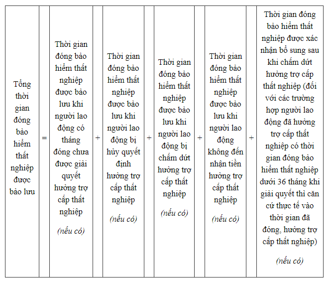* Công thức tính thời gian đóng bảo hiểm thất nghiệp được bảo lưu