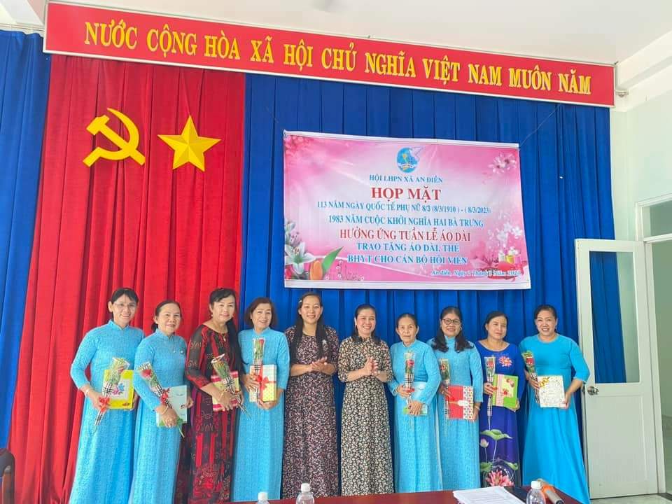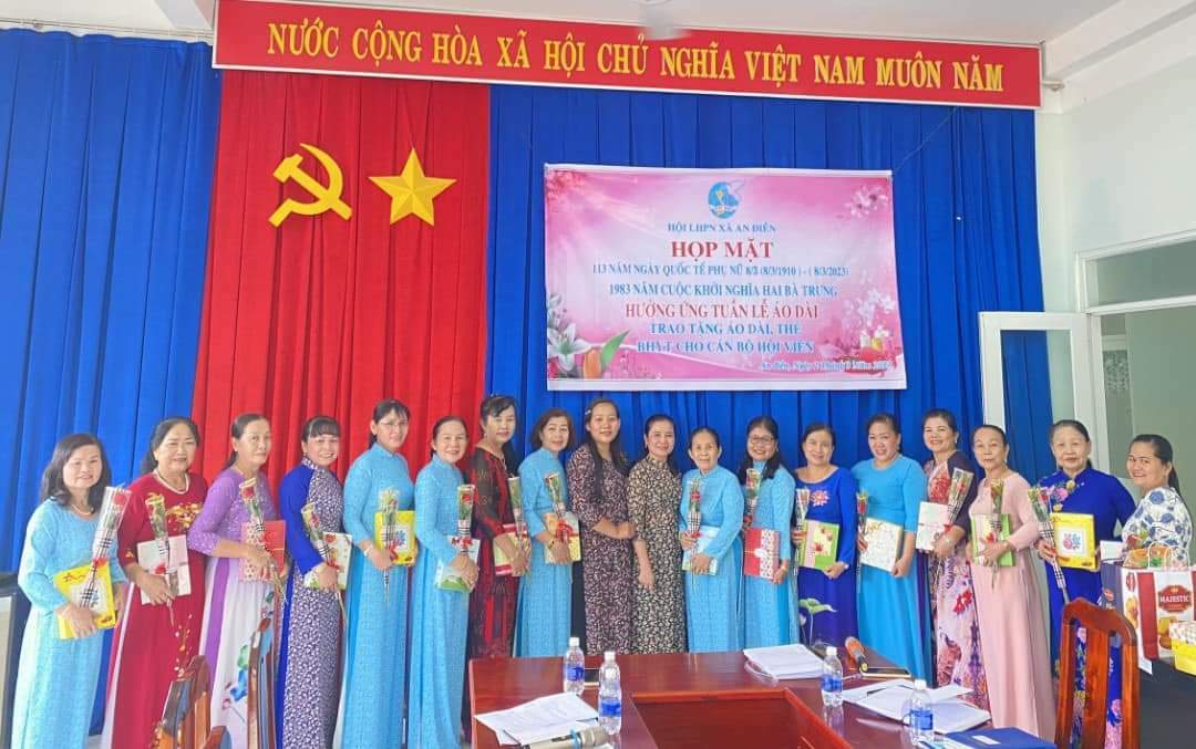 Dịp này, Hội LHPN xã An Điền đã trao tặng 30 bộ áo dài cho cán bộ, hội viên, phụ nữ và và trao tặng 5 thẻ BHYT cho cán bộ, hội viên với tổng kinh phí 16 triệu đồng.