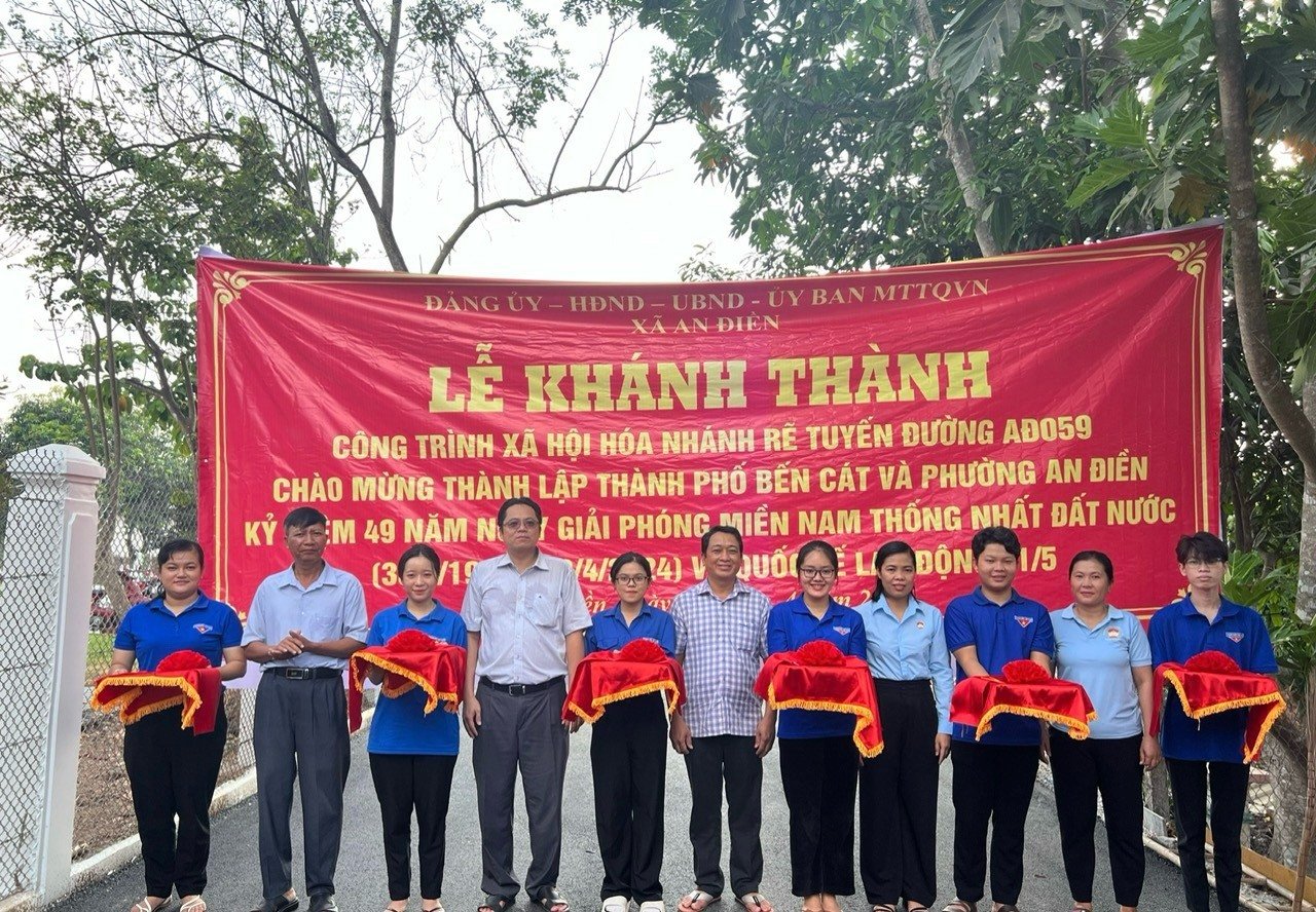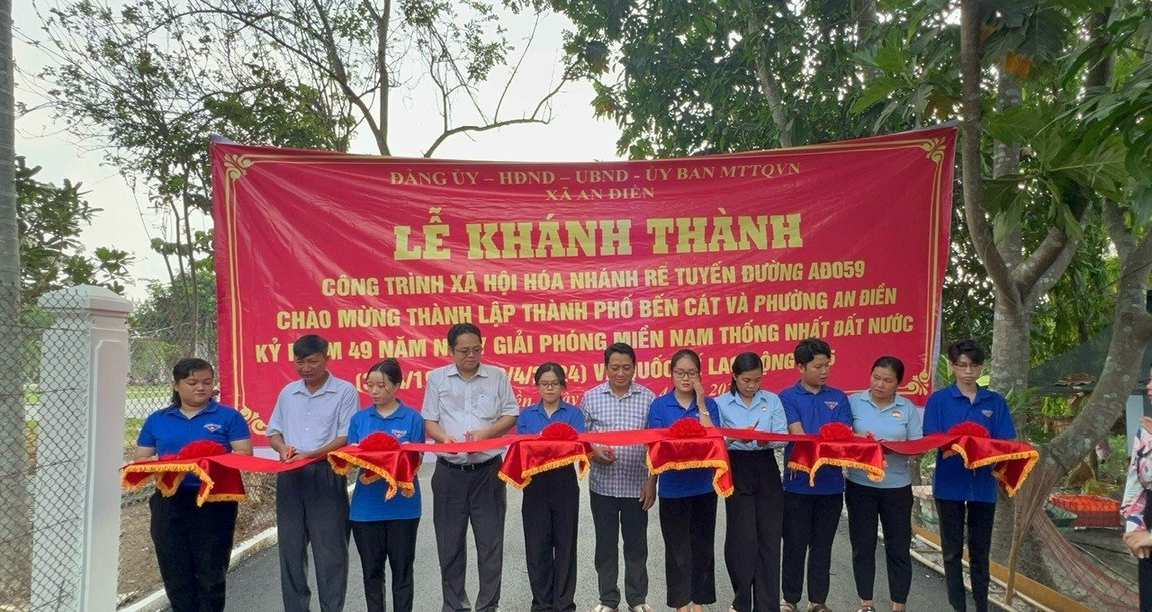 Thiết thực chào mừng sự kiện thành lập thành phố Bến Cát và phường An Điền, kỷ niệm 49 năm ngày Giải phóng miền Nam, thống nhất đất nước (30/4/1975 – 30/4/2024) và Quốc tế lao động 01/5, ngày 20/4, Đảng ủy - HĐND - UBND - Ủy ban MTTQ Việt Nam xã An Điền khánh thành công trình nâng cấp bê tông nhựa nóng nhánh rẽ tuyến đường An Điền 059 bằng nguồn xã hội hóa.