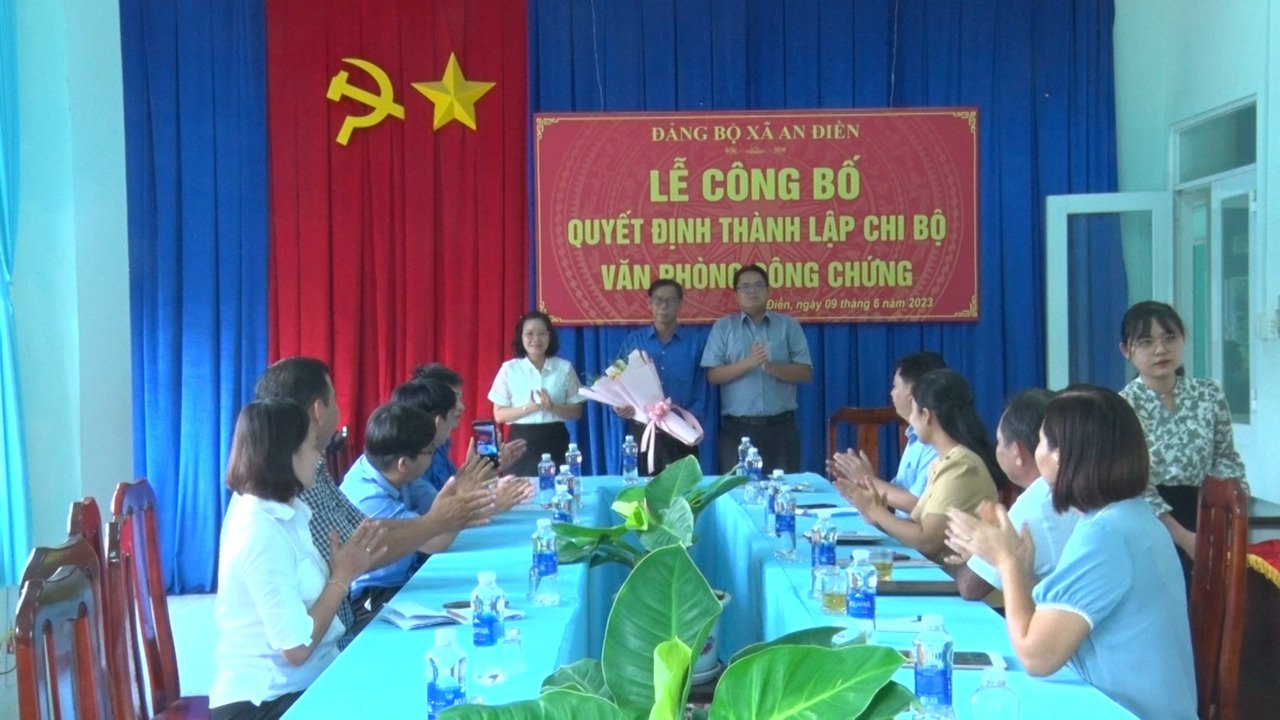 Chiều ngày 09/6, Đảng ủy xã An Điền tổ chức lễ công bố Quyết định thành lập chi bộ Văn phòng Công chứng tại ấp Kiến An, xã An Điền. Đến dự có đồng chí Nguyễn Thị Yến Loan – Trưởng Ban Tổ chức Thị ủy, đồng chí Lê Nguyên Khôi – Bí thư Đảng ủy xã.