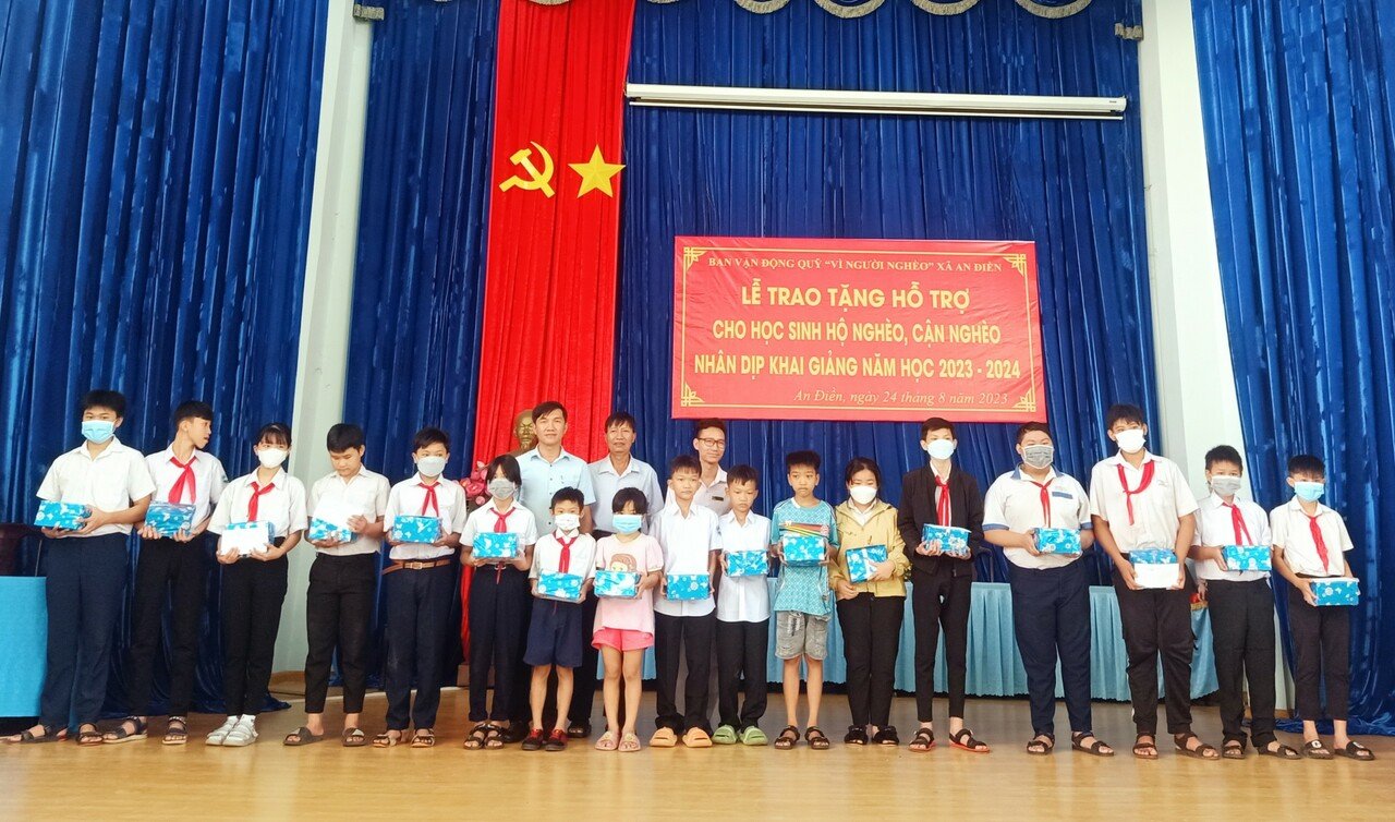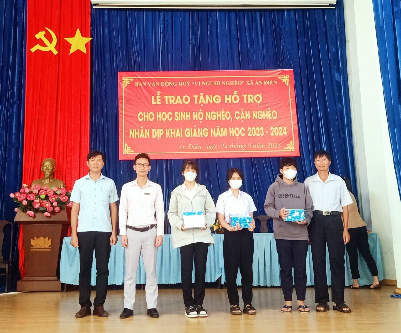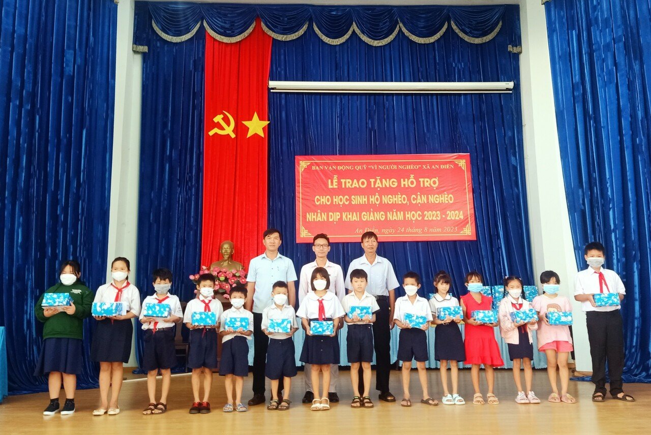 Nhằm hỗ trợ các em học sinh nghèo vượt khó, học giỏi, chiều ngày 24/8, Ban vận động Quỹ “vì người nghèo” xã An Điền tổ chức trao hỗ trợ cho học sinh thuộc hộ nghèo, cận nghèo nhân dịp năm học mới 2023 – 2024.