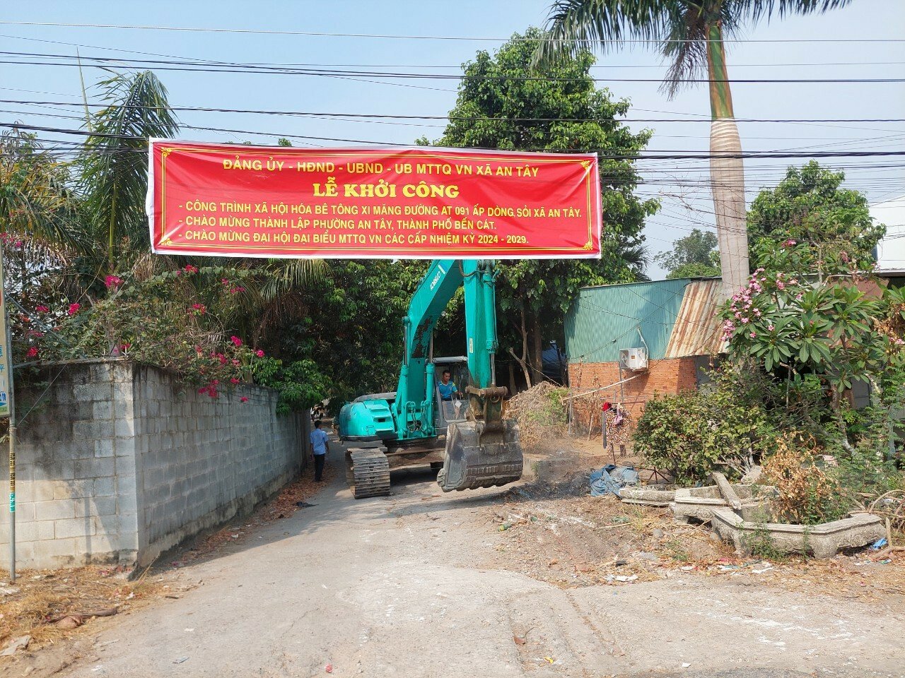 Thiết thực chào mừng xã An Tây được nâng lên phường và thị xã Bến Cát trở thành thành phố trực thuộc tỉnh Bình Dương, ngày 12/4, xã An Tây tổ chức khởi công nâng cấp tuyến đường AT091 trên địa bàn ấp Dòng Sỏi.