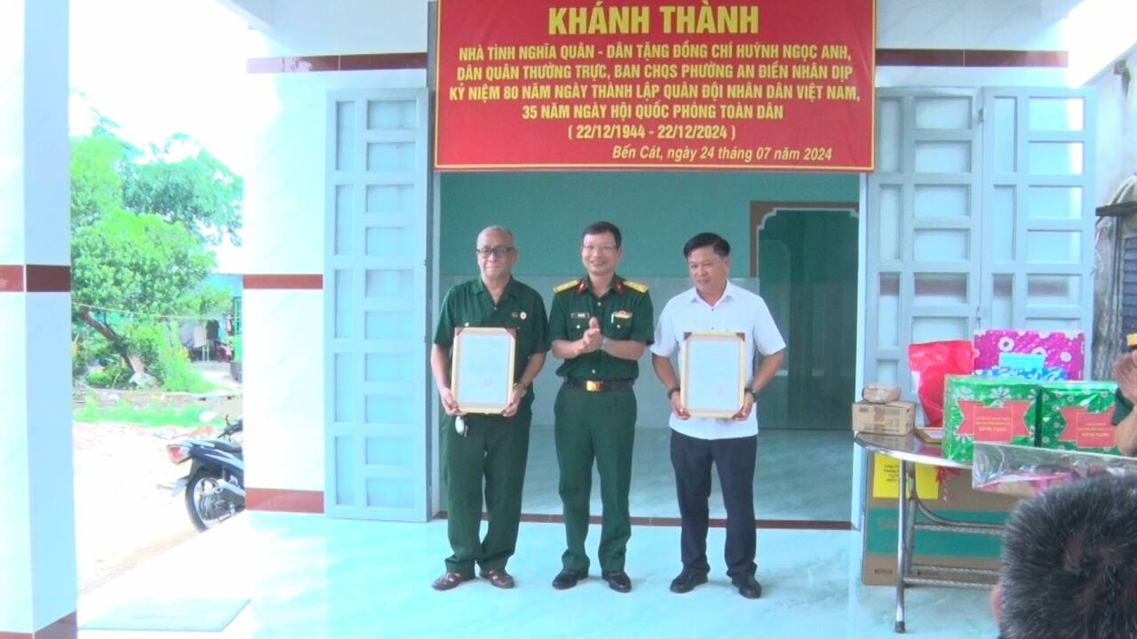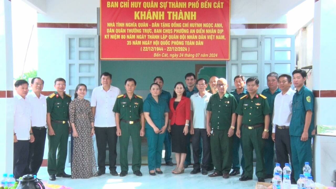 Ngày 24/7, tại phường An Điền, Ban Chỉ huy Quân sự thành phố Bến Cát tổ chức lễ khánh thành và bàn giao nhà tình nghĩa quân – dân cho đồng chí Huỳnh Ngọc Anh, sinh năm 1990, là dân quân thường trực Ban chỉ huy Quân sự phường An Điền có hoàn cảnh khó khăn về nhà ở. Đến dự có Thượng tá Trần Anh Hùng – Phó Chủ nhiệm Chính trị Bộ Chỉ huy Quân sự tỉnh Bình Dương, bà Trần Thị Thảo – Phó Chủ tịch UBND thành phố, ông Nguyễn Văn Chung – Chủ tịch Ủy ban MTTQ Việt Nam thành phố.