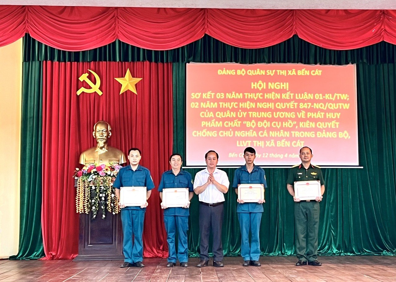 Cũng tại Hội nghị, Ban Chính trị, BCHQS thị xã đã trao giấy khen cho 04 tập thể và 12 cá nhân có thành tích xuất sắc trong sơ kết 03 năm thực hiện Kết luận số 01-KL/TW của Bộ Chính trị và 02 năm thực hiện Nghị quyết số 847-NQ/QUTW của Quân ủy Trung ương.