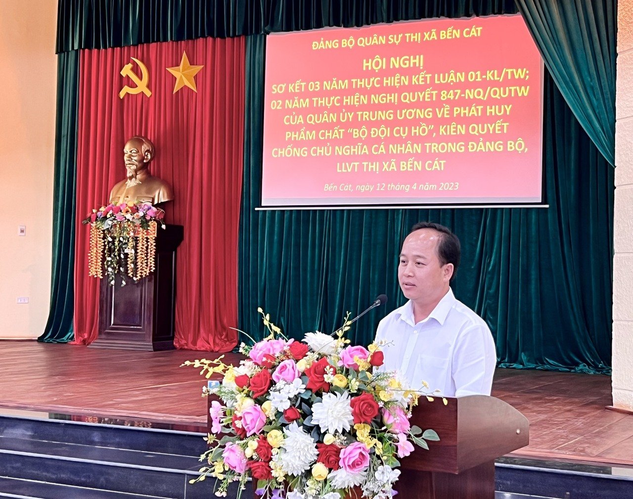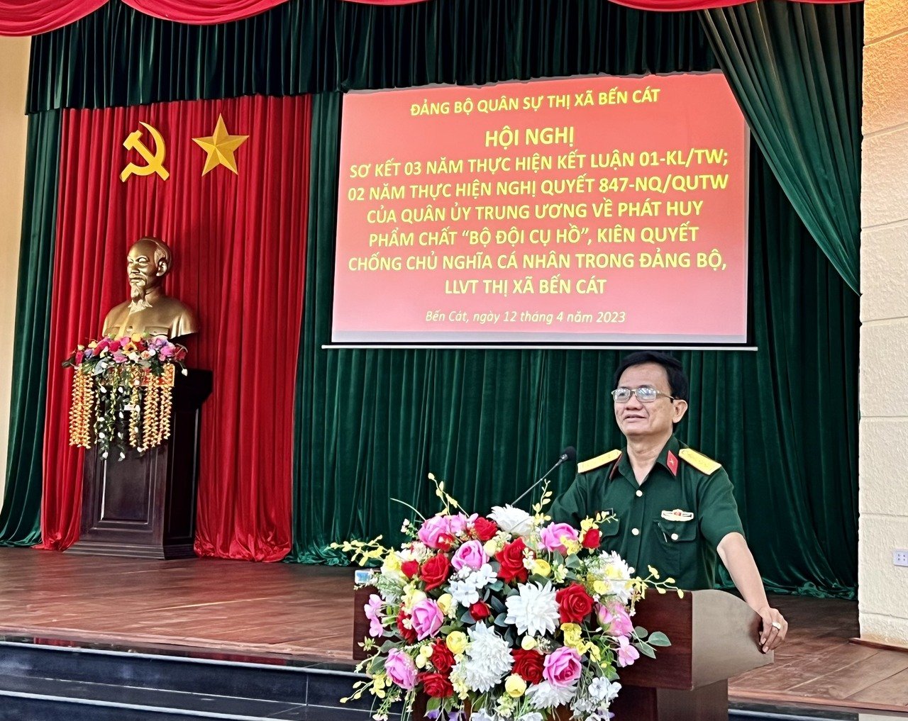 Phát biểu chỉ đạo tại Hội nghị, Đại tá Lê Minh Chí – Phó Chính ủy Bộ CHQS tỉnh ghi nhận những kết quả Ban Chỉ huy Quân sự thị xã Bến Cát đã đạt được trong thời gian qua, đồng thời đề nghị đơn vị cần tiếp tục đẩy mạnh, nâng cao nhận thức, bản lĩnh chính trị, phẩm chất đạo đức và năng lực cho cán bộ, chiến sĩ; thường xuyên rèn luyện việc học tập và làm theo Bác, phát huy các mô hình hay, cách làm mới thiết thực, hiệu quả; nâng cao trình độ cá nhân, nêu cao tinh thần gương mẫu và thường xuyên nắm bắt tư tưởng chính trị của cán bộ, đảng viên trong đơn vị…