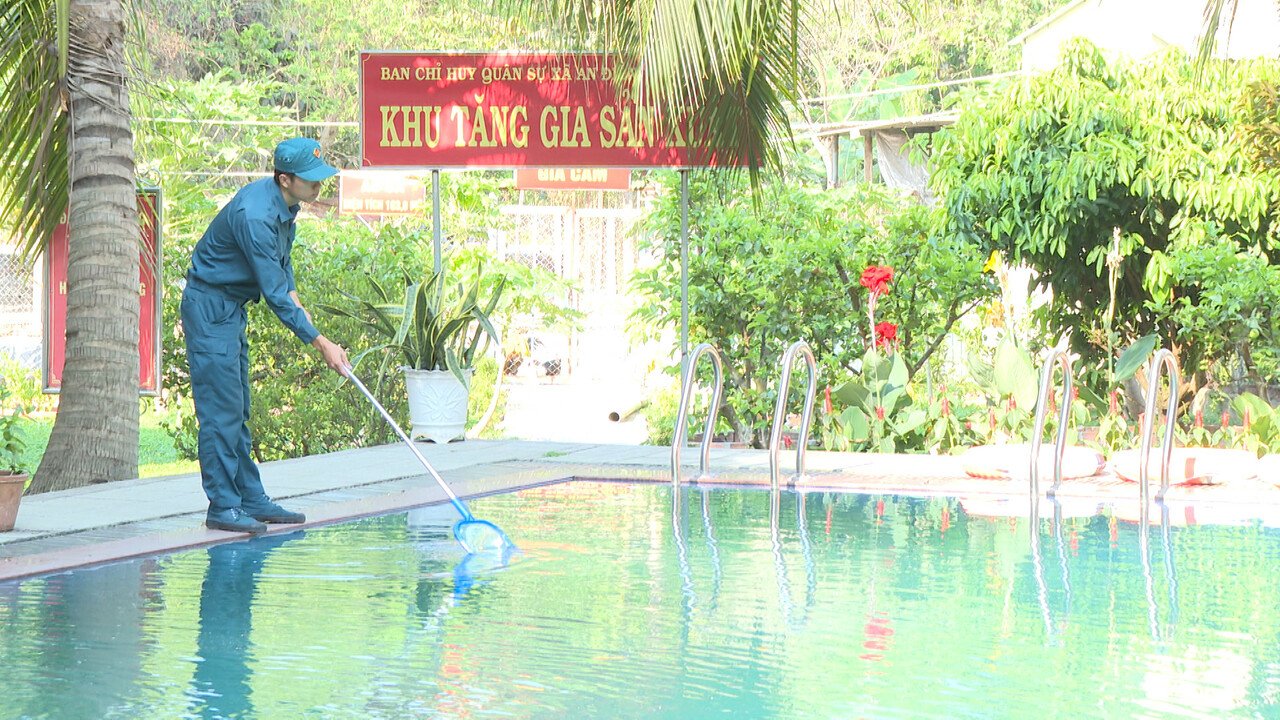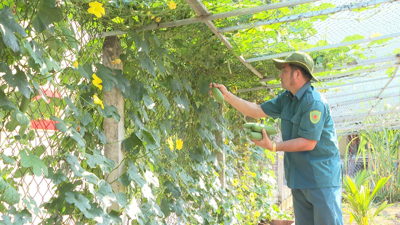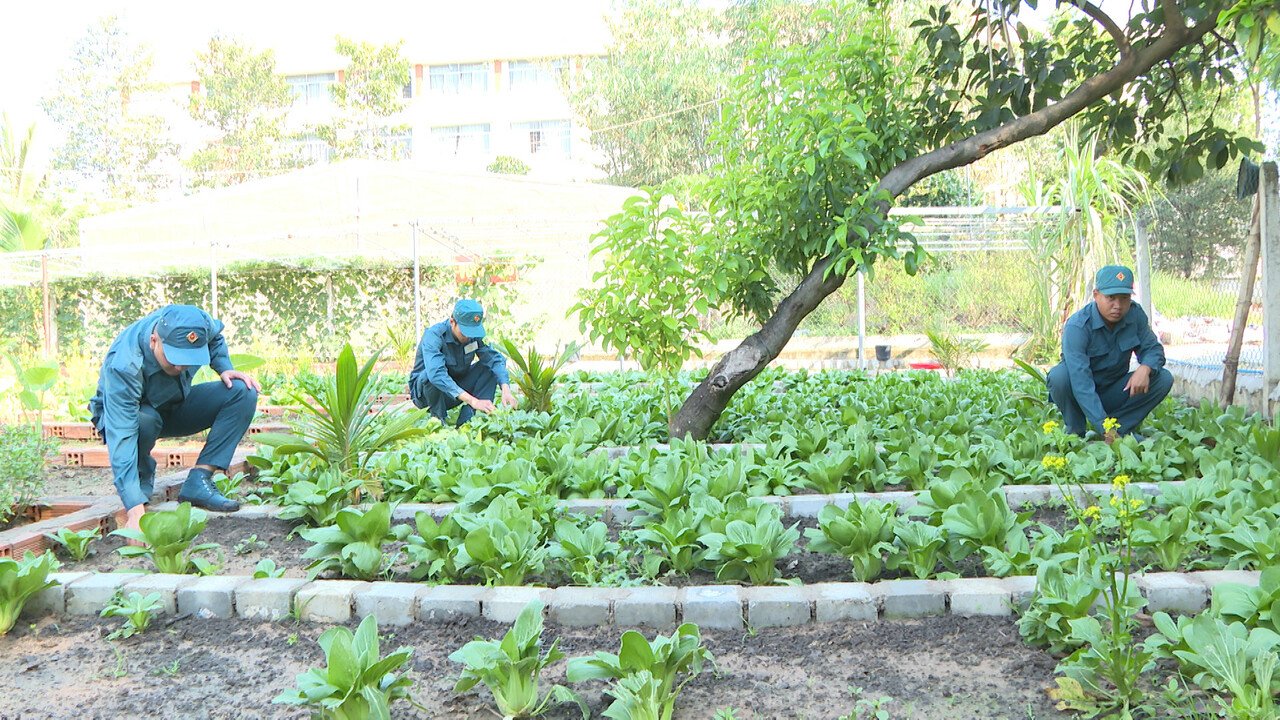 Không chỉ cung cấp đủ gạo hằng năm, Ban CHQS xã còn xây dựng vườn tăng gia với đầy đủ các loại rau xanh như mồng tơi, rau muống, rau cải, vườn gia vị và bầu, bí, mướp... Khai thác có hiệu quả hồ nuôi cá kết hợp lấy nước chăm sóc rau xanh, vệ sinh chuồng trại. Khu vực chăn nuôi gia súc, gia cầm được xây dựng kiên cố, đảm bảo vệ sinh. Với diện tích 400m2, vốn đầu tư 500 triệu đồng, hiện tổng đàn gà, vịt khoảng 150 con, cá khoảng 120kg, tổng đàn heo 45 con, bảo đảm chỉ tiêu thịt, tạo nguồn thực phẩm an toàn tại chỗ, tăng cường sức khỏe cho lực lượng tại đơn vị...