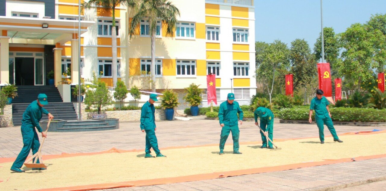 Tháng 9 năm 2015, Ban chỉ huy đã sử dụng 7.000m2 đất để trồng lúa nước. Do chưa có kinh nghiệm chọn giống, chăm sóc, chưa hiểu về đất, nguồn nước cung cấp nên năng suất của diện tích lúa chỉ đạt được 2 tấn. Không hài lòng với kết quả đạt được, Ban chỉ huy cùng lực lượng thường trực cùng tham gia các lớp tập huấn của Hội Nông dân xã, Trạm Khuyến nông thị xã tổ chức, đồng thời đến các hộ gia đình có năng suất cao trong việc trồng lúa tại địa phương để học hỏi kinh nghiệm, hiểu thêm về hiện trạng đất, kỹ thuật chăm sóc phù hợp với đất, giống lúa, thời tiết, giai đoạn phát triển và mùa vụ khác nhau để đạt năng suất cao hơn. Bên cạnh đó, Ban CHQS xã còn áp dụng khoa học kỹ thuật vào sản xuất, nhằm hạn chế sâu bệnh cho lúa, mang lại hiệu quả cao. Mỗi năm đơn vị sản xuất 2 vụ lúa, năng suất ước đạt 2,5 tấn/vụ, đảm bảo 100% nguồn lương thực sạch cho cán bộ chiến sĩ, dân quân thường trực.