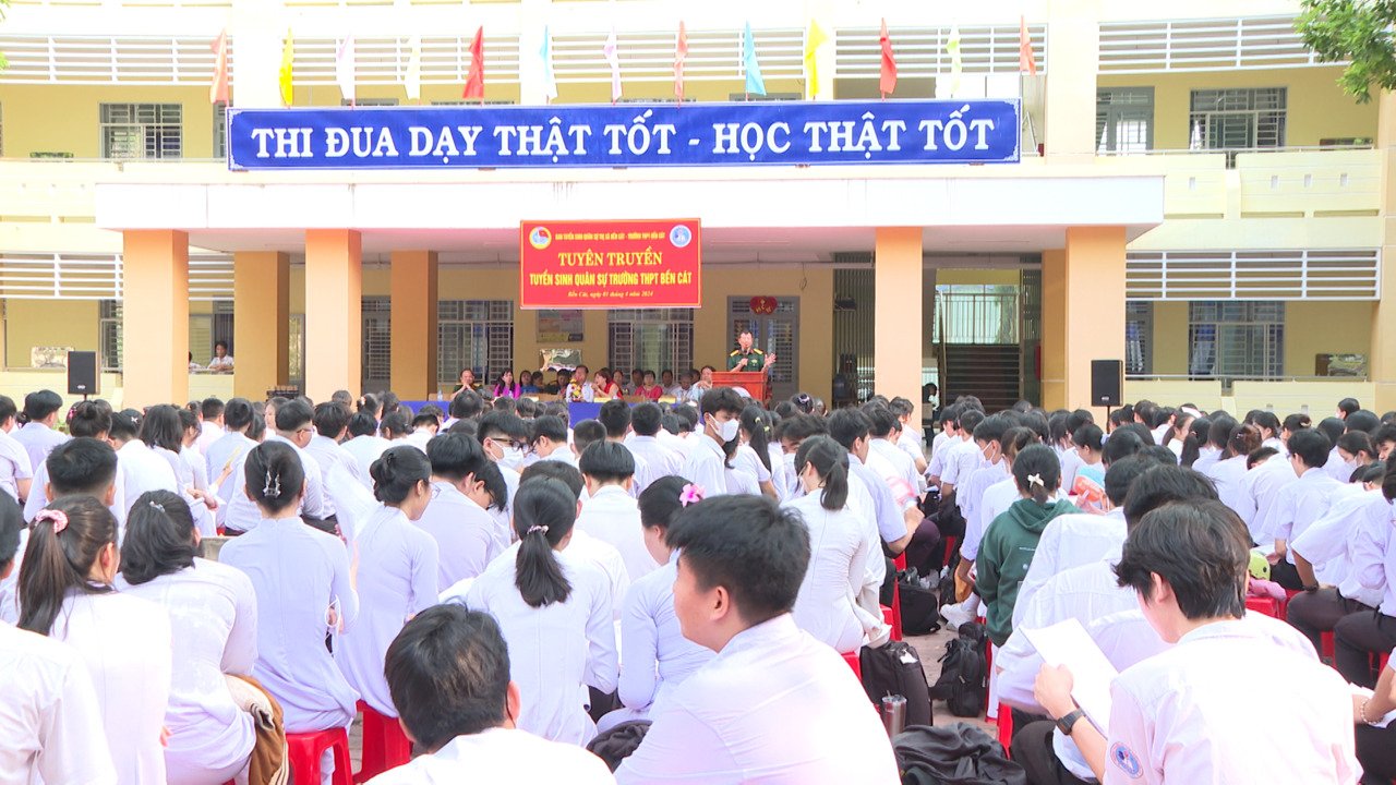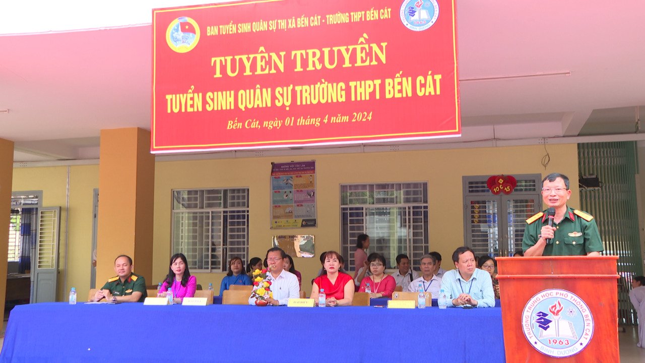 Ban CHQS Bến Cát tuyên truyền tuyển sinh quân sự tại trường THPT Bến Cát