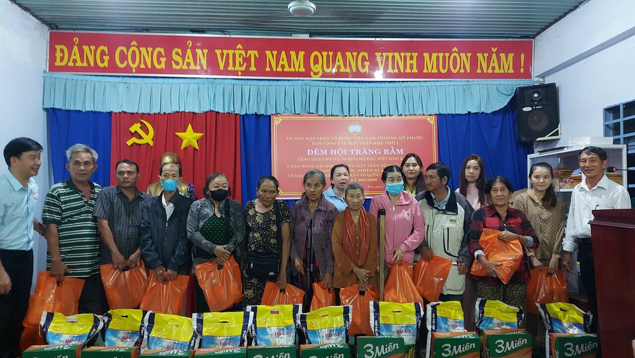 Ban công tác Mặt trận khu phố 1 (Mỹ Phước) tặng 70 phần quà cho hộ nghèo, cận nghèo, khó khăn