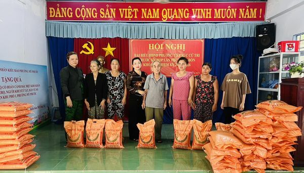 Ngày 08/6, Ban công tác Mặt trận khu phố 1 phường Mỹ Phước đã vận động nhà hảo tâm tổ chức tặng gạo cho hộ nghèo, khó khăn, người tàn tật, trẻ mồ côi trên địa bàn khu phố.