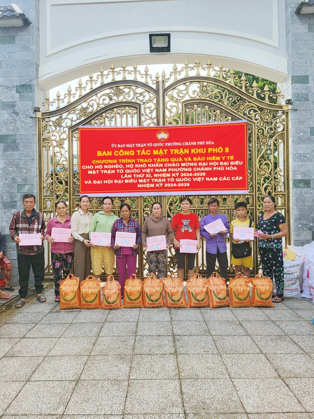Theo đó, Ban Công tác Mặt trận khu phố 8 đã trao tặng 09 thẻ bảo hiểm y tế và 50 phần quà, mỗi phần là 20kg gạo cho hộ nghèo, với tổng số tiền 24 triệu đồng.