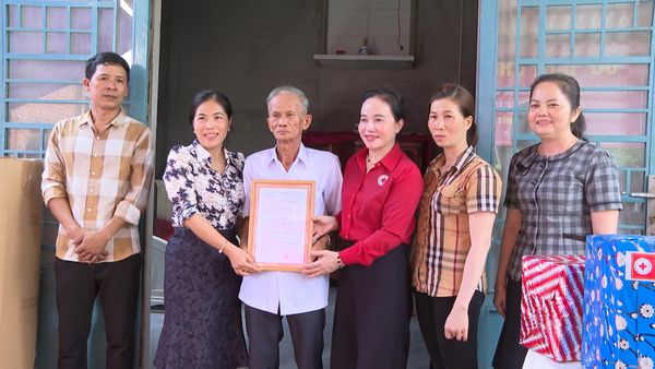 Ngoài nhận được căn nhà mới, gia đình chị Dương Thị Vào còn nhận các phần quà, đồ dùng thiết yếu từ lãnh đạo Hội Chữ thập đỏ tỉnh, thành phố và lãnh đạo địa phương.