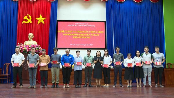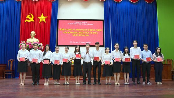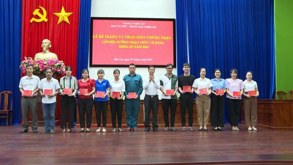 Sáng ngày 7/6, Ban Tổ chức Thành ủy, Trung tâm Chính trị thành phố cùng phối hợp tổ chức bế giảng lớp bồi dưỡng nhận thức về Đảng khóa III năm 2024. Đến dự có ông Nguyễn Thanh Phong – Phó Trưởng Ban Tuyên giáo Thành ủy, lãnh đạo các phòng, ban liên quan cùng 95 học viên.