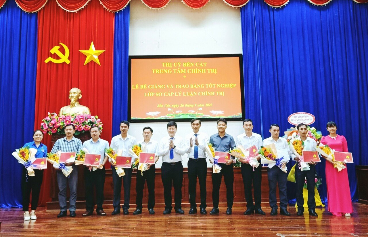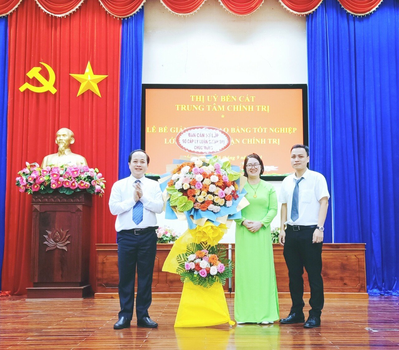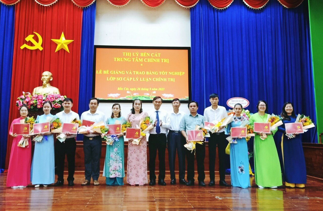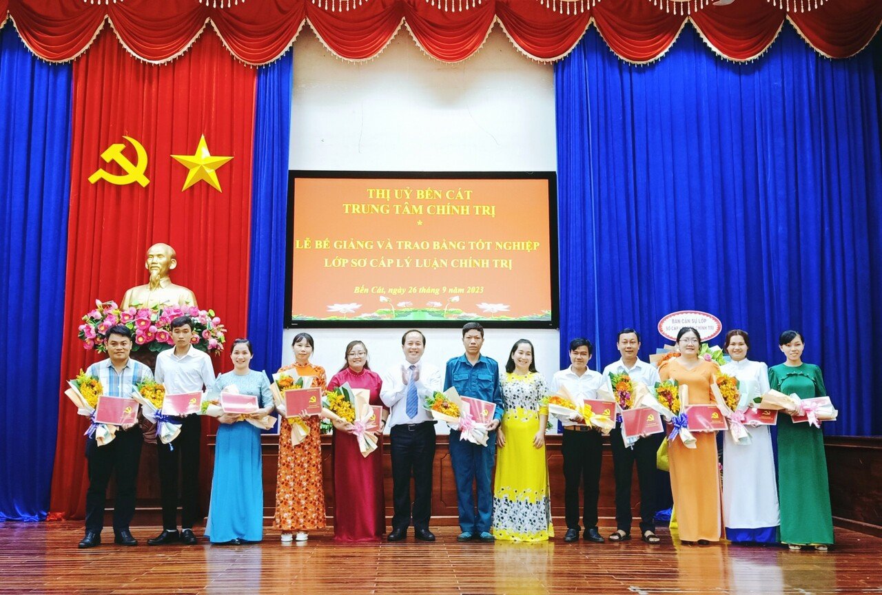 Ngày 26/9, Trung tâm Chính trị thị xã Bến Cát đã tổ chức bế giảng lớp sơ cấp Lý luận chính trị khóa I năm 2023. Đồng chí Tô Văn Sang – Trưởng Ban Tuyên giáo Thị ủy, Giám đốc Trung tâm Chính trị thị xã, đồng chí Ngô Hoàng Sĩ – Phó Trưởng Ban Dân vận Thị ủy đã đến dự.