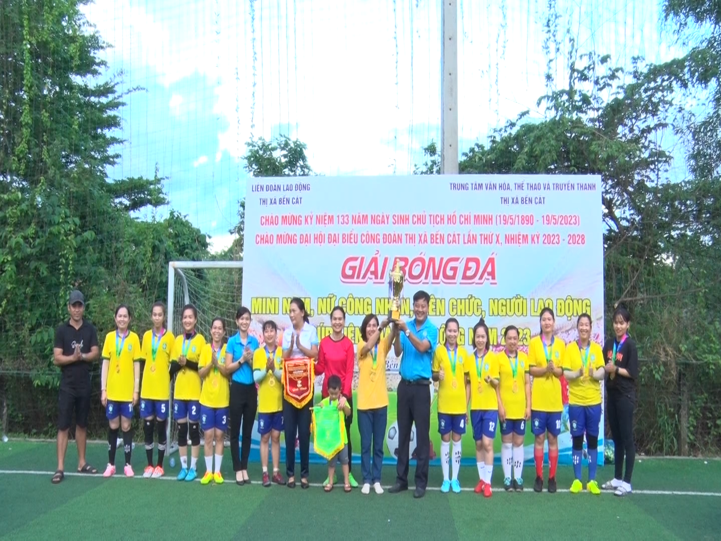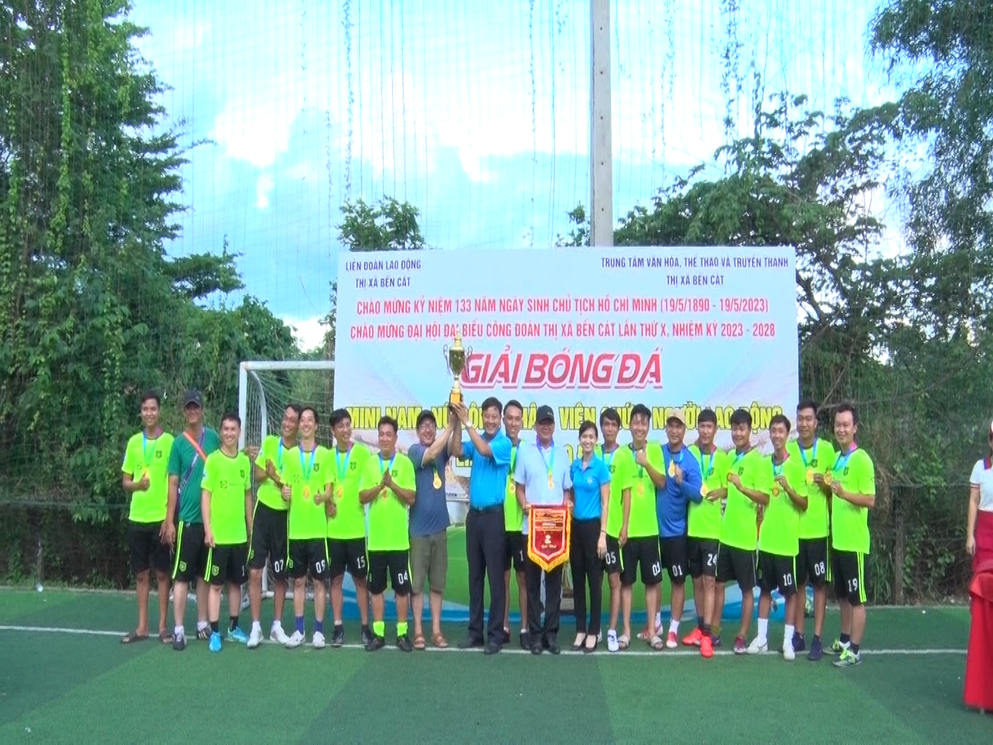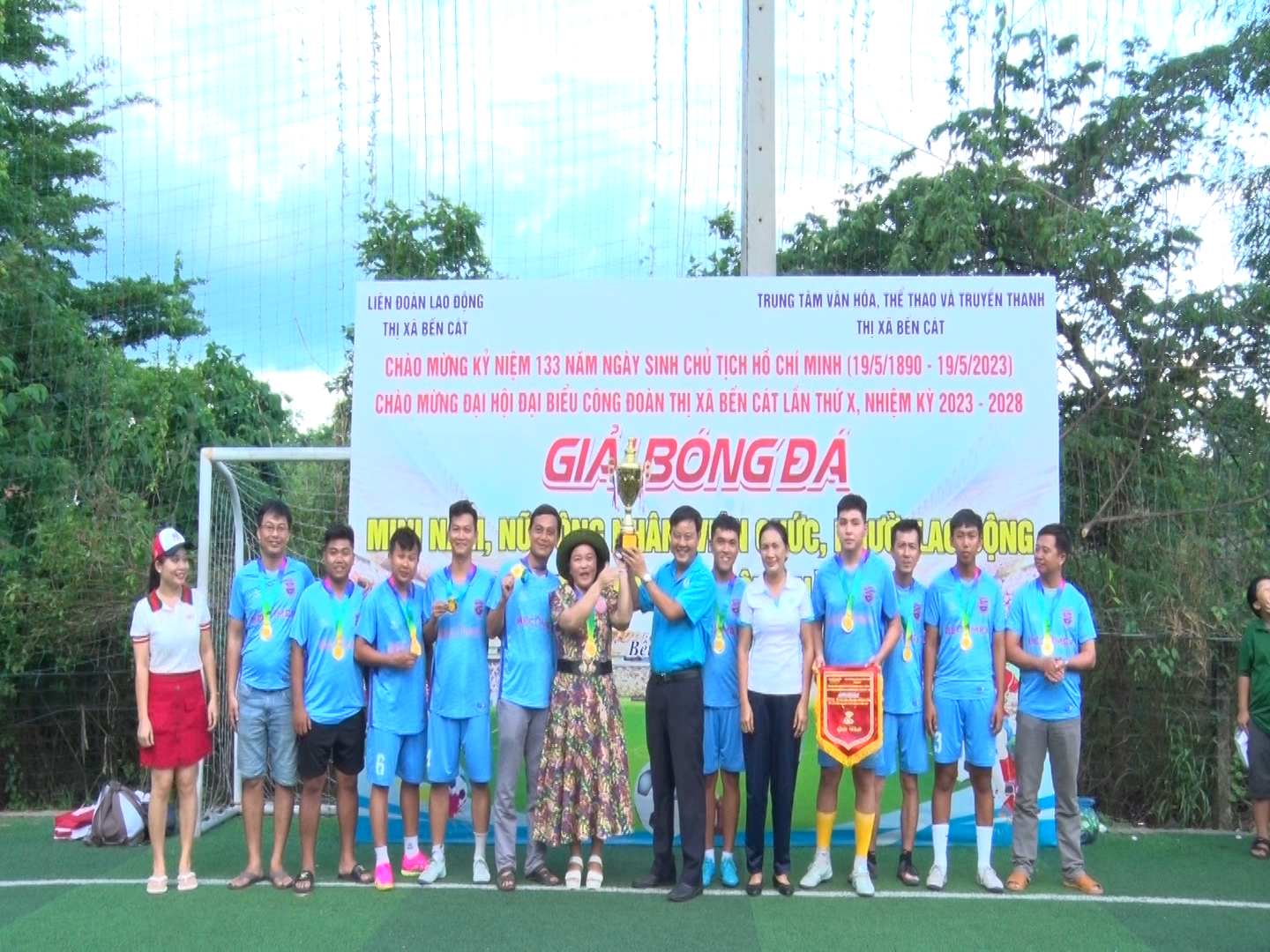 Theo đó, sau gần 1 tháng tranh tài sôi nổi, kết quả giải nhất khối bóng đá nữ được trao cho CĐCS trường Mầm non Hòa Lợi; giải nhất khối xã, phường thuộc về CĐCS xã An Tây; đội bóng CĐCS Quản lý đô thị đạt giải nhất khối không liên kết; liên quân CĐCS trường Tiểu học Trần Quốc Tuấn và CĐCS Tiểu học Lương Thế Vinh đạt giải nhất khối trường học liên kết.