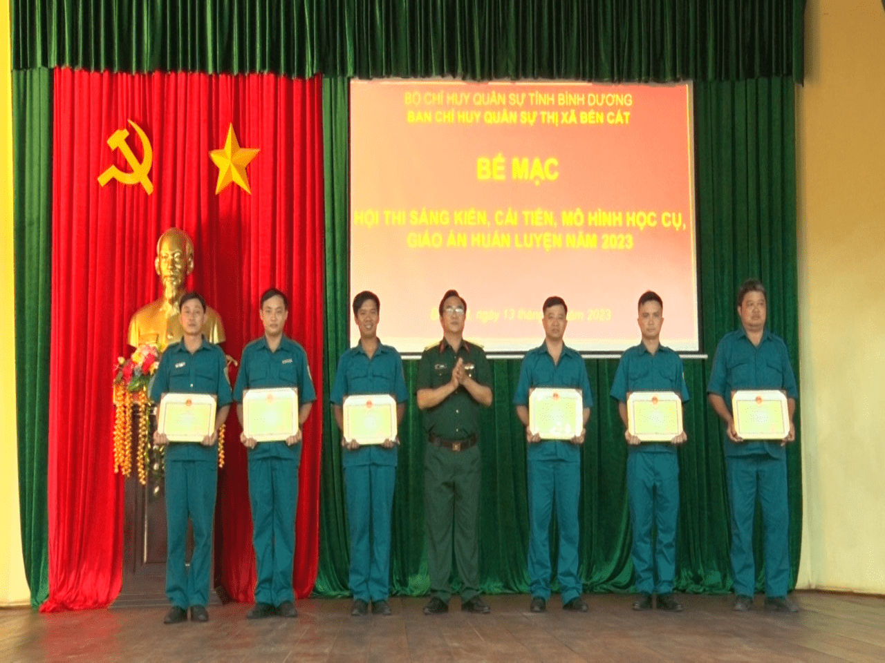 Kết quả hội thi, Ban CHQS thị xã đã trao giải nhất toàn đoàn cho Ban CHQS phường Mỹ Phước, giải nhì Ban CHQS phường Thới Hòa và giải ba Ban CHQS phường Tân Định, ngoài ra Ban tổ chức còn trao 12 giải ở từng nội dung thi.