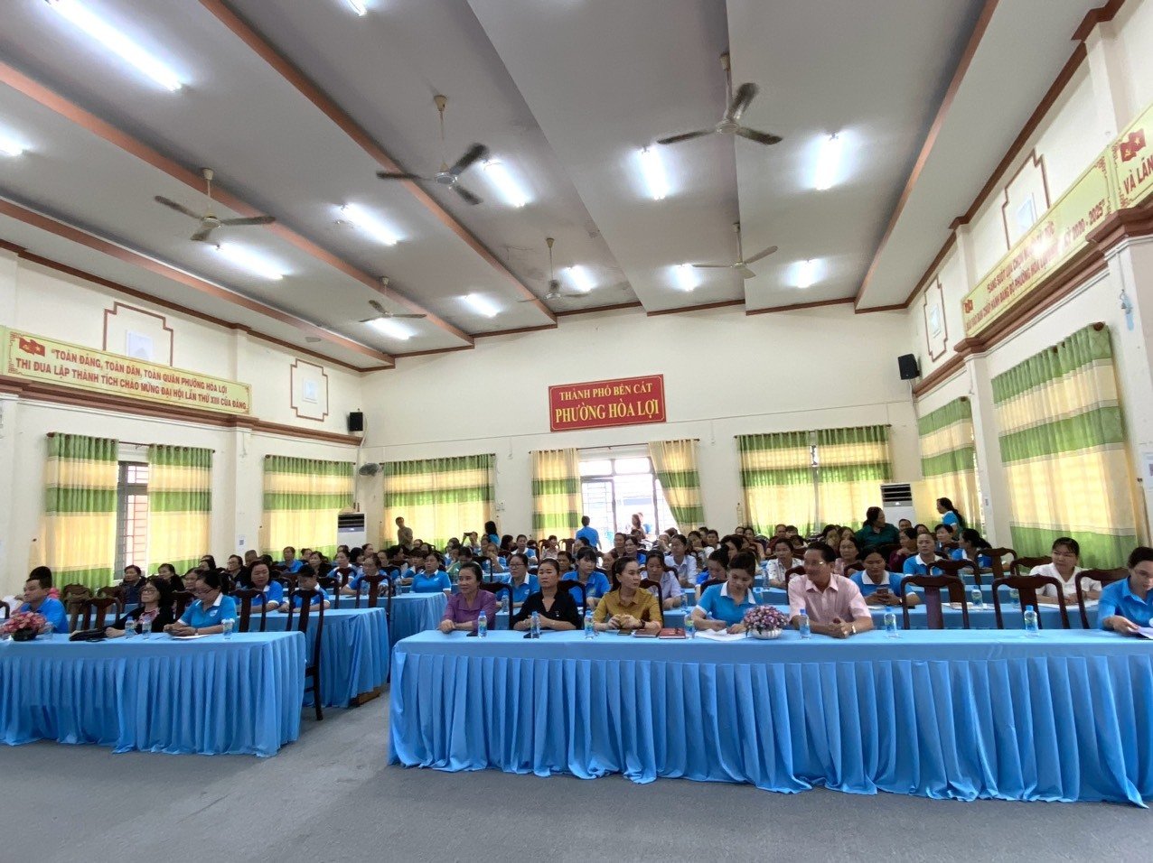 Chiều ngày 27/06/2024 tại UBND phường Hòa Lợi, BHXH thành phố Bến Cát phối hợp với Hội LHPN thành phố Bến Cát tổ chức tuyên truyền chính sách BHXH tự nguyện, BHYT hộ gia đình. Tham dự hội nghị gồm có: Thạc sĩ Lê Thanh Nga, nguyên giảng viên chính Học viện Phụ nữ Việt Nam; Bà Nguyễn Thị Tuyết Loan - Thành ủy viên - Chủ tịch Hội LHPN Thành phố; Bà Nguyễn Thị Ánh Diệp - Phó Chủ tịch Hội Liên Hiệp Phụ nữ thành phố; Ông Đỗ Quốc Thịnh – Phó Giám đốc BHXH thành phố; Bà Nguyễn Thị Hồng Phượng – Phó Chủ tịch UBND phường; Cùng các đồng chí là trưởng, phó ban các ngành đoàn thể phường, công đoàn viên, đại diện cấp ủy chi bộ, ban điều hành 5 khu phố, các Chủ tịch, phó chủ tịch, cán bộ đề án Hội LHPN các xã, phường; Cùng với hơn 120 đại biểu của phường là thành viên Ban chỉ đạo phong trào “Toàn dân đoàn kết xây dựng đời sống văn hóa”, các câu lạc bộ “Xây dựng gia đình hạnh phúc”, câu lạc bộ “Gia đình phát triển bền vững”, nhóm “Phòng, chống bạo lực gia đình”, Chi hội phụ nữ các khu phố và đại diện hộ gia đình văn hóa tiêu biểu của phường Hòa Lợi tham dự.