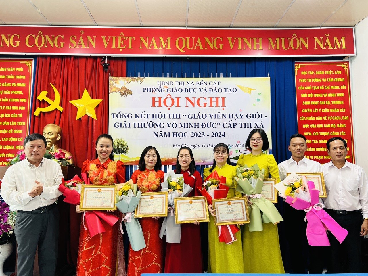 Phòng Giáo dục và Đào tạo thị xã Bến Cát vừa tổ chức hội nghị tổng kết hội thi “Giáo viên dạy giỏi - Giải thưởng Võ Minh Đức” cấp thị xã năm học 2023-2024 đối với giáo dục tiểu học.