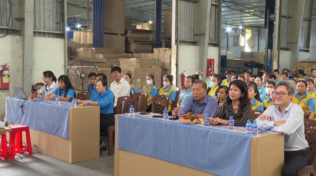 Tham dự buổi tuyên truyền gồm có: bà Ong Thụy Hoàng Mai – Phó Chủ tịch LĐLĐ tỉnh, ông Nguyễn Thanh Phong - Phó Trưởng Ban Tuyên giáo Thành ủy, ông Lê Nguyễn Thanh Bình - Chủ tịch LĐLĐ thành phố, bà Phan Thị Mỹ Dung – Phó Giám đốc BHXH thành phố, cùng lãnh đạo các phòng ban liên quan và hơn 150 người lao động tại công ty.