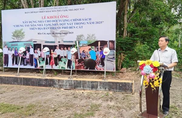Sáng 25/3, ông Nguyễn Văn Lộc - Ủy viên Ban Thường vụ Tỉnh ủy, Chủ tịch HĐND tỉnh, đã có chuyến công tác tại thành phố Bến Cát để kiểm tra, chỉ đạo công tác hỗ trợ nhà ở và tham dự lễ khởi công xây dựng nhà cho đối tượng chính sách có hoàn cảnh khó khăn về nhà ở. Đây là hoạt động thiết thực nhằm thực hiện chủ trương của Tỉnh ủy về xóa nhà tạm, nhà dột nát, góp phần nâng cao chất lượng cuộc sống cho người dân. Cùng dự có ông Lê Hồng Thông – Tỉnh ủy viên, Bí thư Thành ủy, bà Nguyễn Thị Yến Loan – Phó Bí thư Thường trực, Chủ tịch HĐND thành phố, ông Nguyễn Trọng Ân – Phó Bí thư, Chủ tịch UBND thành phố, ông Nguyễn Văn Chung - Chủ tịch Ủy ban MTTQ Việt Nam thành phố, bà Trần Thị Thảo – Phó Chủ tịch UBND thành phố.