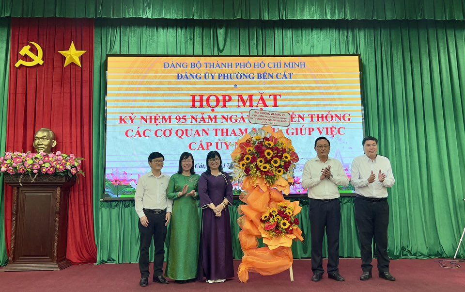 Ngày 17/10, Đảng ủy phường Bến Cát đã long trọng tổ chức Họp mặt kỷ niệm 95 năm Ngày truyền thống các cơ quan tham mưu, giúp việc cấp ủy. Đến dự có đồng chí Nguyễn Trọng Ân - Bí thư Đảng ủy, Chủ tịch HĐND phường , đồng chí Nguyễn Văn Chung - Phó Bí thư Thường trực Đảng ủy phường, kiêm Giám đốc Trung tâm Chính trị phường, lãnh đạo các phòng, ban phường và các đồng chí nguyên lãnh đạo Bến Cát tiêu biểu qua các thời kỳ,