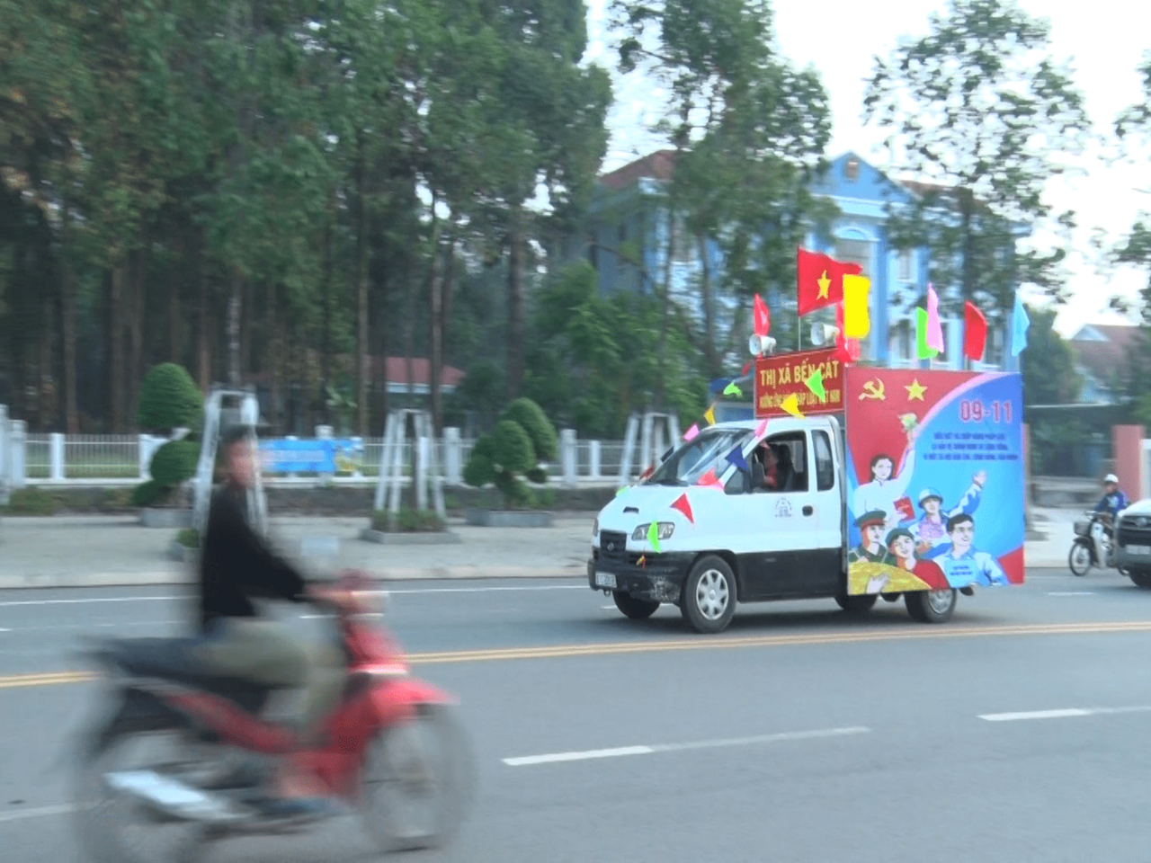 Sau lễ phát động, xe loa tuyên truyền pháp luật trong khu dân cư và các trục đường chính trên địa bàn thị xã.