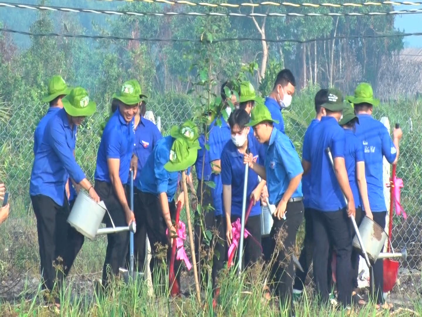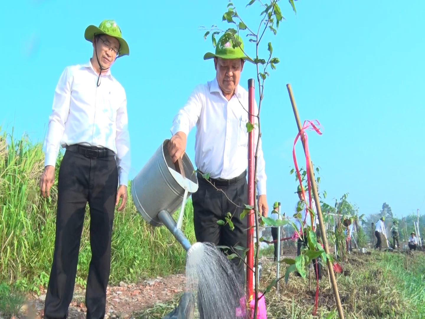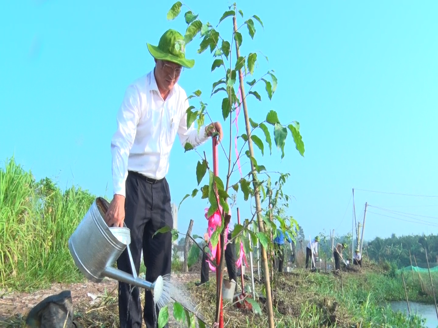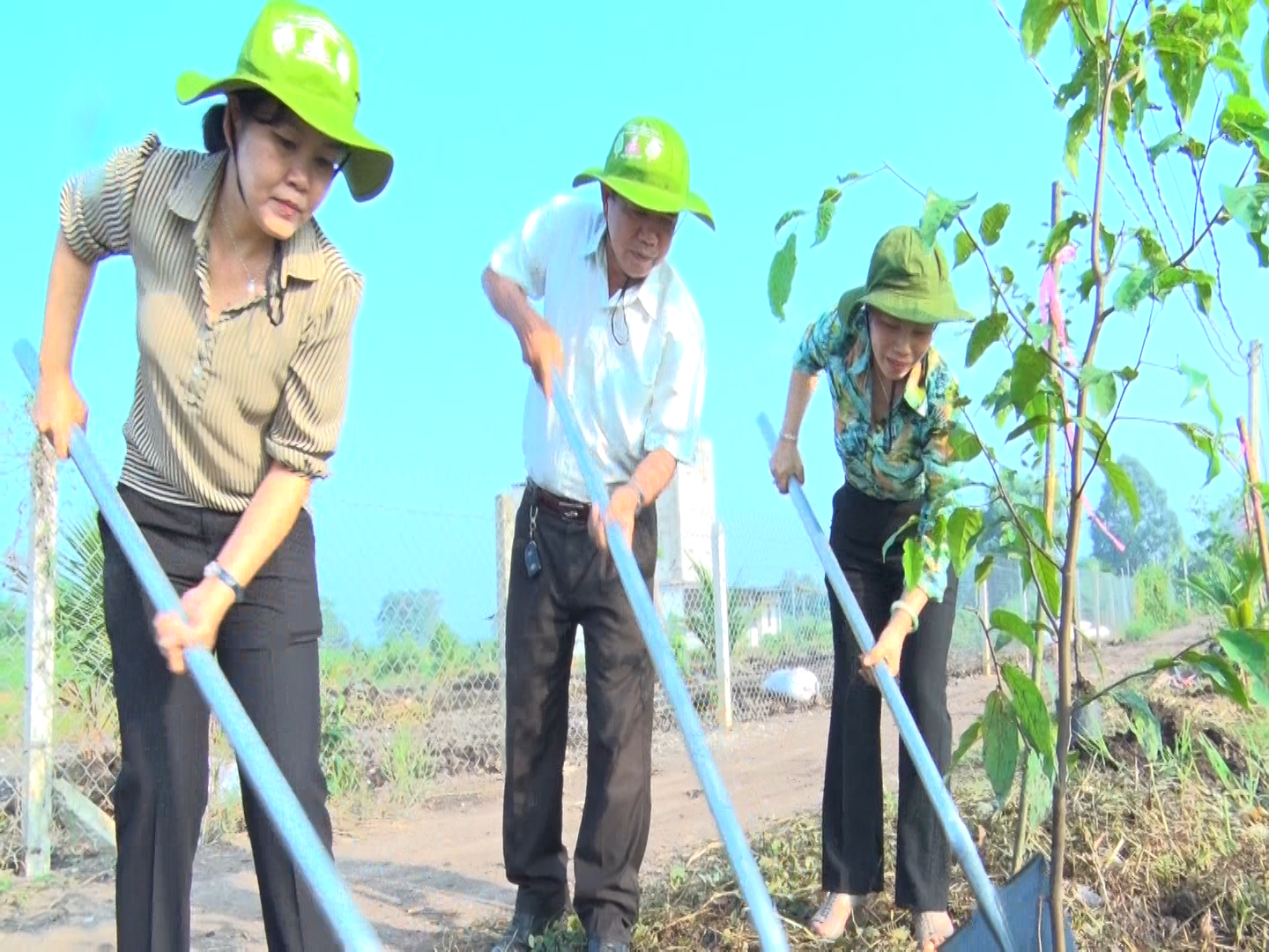 Sau buổi lễ, lãnh đạo thị xã Bến Cát cùng đoàn viên, hội viên và học sinh tiến hành trồng cây xanh dọc Rạch Gia, xã Phú An.