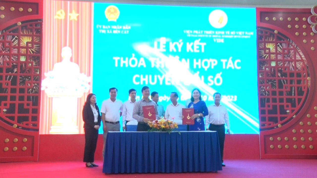 Nhằm tăng cường sự hợp tác tin cậy giữa UBND thị xã và các đơn vị, góp phần huy động hiệu quả các nguồn lực khoa học, công nghệ phục vụ công tác chuyển đổi số trên địa bàn thị xã, thúc đẩy mạnh mẽ việc xây dựng chính quyền số, phát triển kinh tế số, xã hội số. Viện Phát triển Kinh tế số Việt Nam và UBND thị xã Bến Cát đã thống nhất ký kết hợp tác về triển khai chuyển đổi số giai đoạn 2023 -2025.
