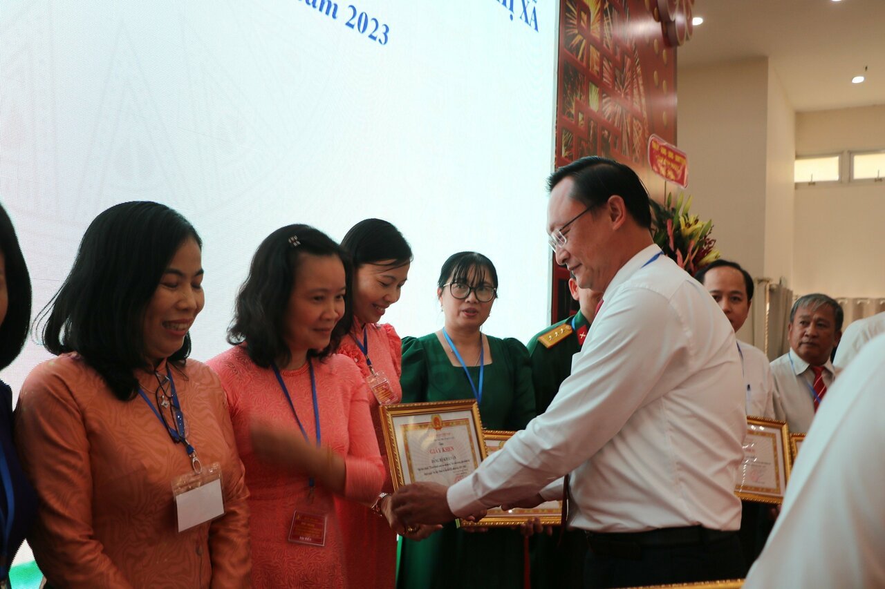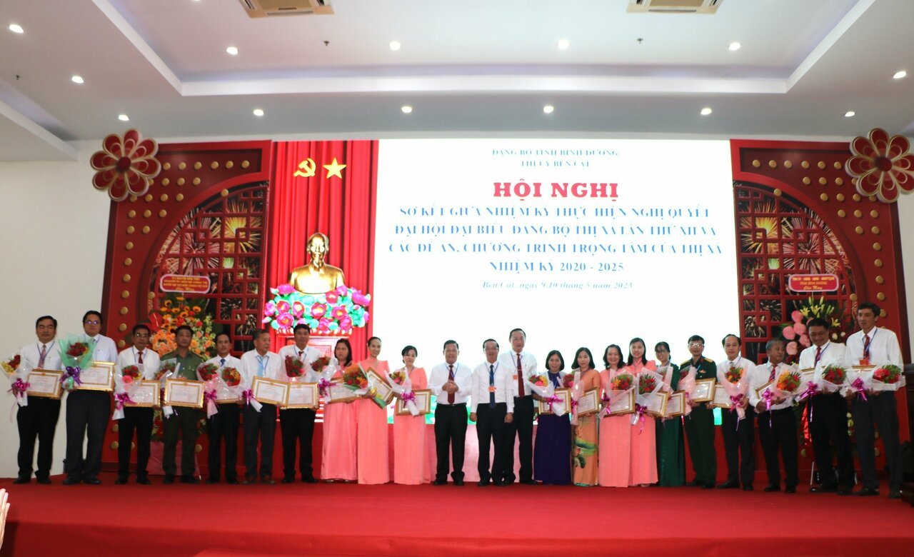 Dịp này, Thị ủy Bến Cát khen thưởng 32 tập thể, 72 cá nhân có thành tích xuất sắc trong thực hiện Nghị quyết Đại hội đại biểu Đảng bộ thị xã lần thứ XII, nhiệm kỳ 2020-2025.