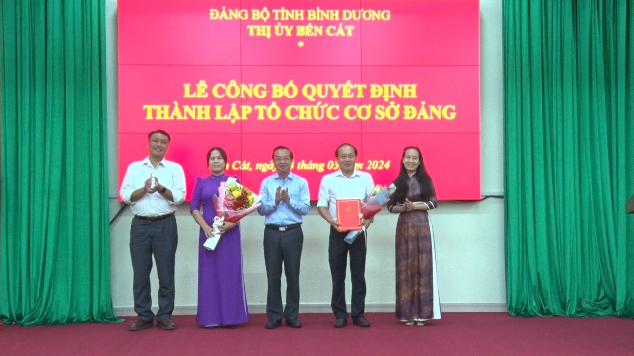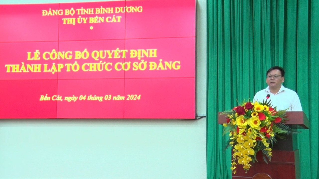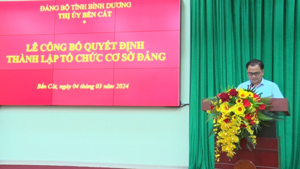 Tại buổi lễ đã công bố Quyết định giải thể Đảng bộ Phòng Quản lý đô thị thị xã, đồng thời công bố thành lập 03 chi bộ trực thuộc Thị ủy Bến Cát kể từ ngày 01/3/2024. Cụ thể, thành lập Chi bộ Phòng Quản lý đô thị với 20 đảng viên, chỉ định đồng chí Trần Ngọc Sang – Trưởng Phòng Quản lý đô thị giữ chức vụ Bí thư chi bộ; thành lập Chi bộ Ban Quản lý dự án đầu tư xây dựng với 14 đảng viên, chỉ định đồng chí Nguyễn Minh Quốc – Giám đốc Ban Quản lý dự án đầu tư xây dựng giữ chức vụ Bí thư chi bộ và thành lập Chi bộ Xí nghiệp công trình công cộng với 07 đảng viên, chỉ định đồng chí Nguyễn Văn Tuấn – Giám đốc Xí nghiệp công trình công cộng giữ chức vụ Bí thư chi bộ.