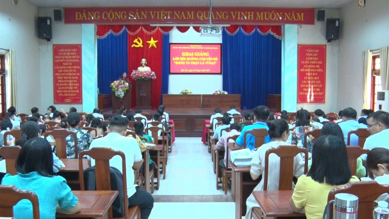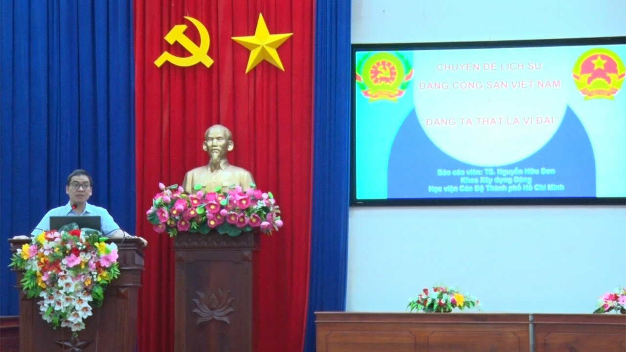 Tại lớp bồi dưỡng, các học viên được Tiến sĩ Nguyễn Hữu Sơn – Giảng viên Khoa Xây dựng Đảng, Học viện Cán bộ thành phố Hồ Chí Minh triển khai một số nội dung cơ bản về lịch sử Đảng như: Đảng Cộng sản Việt Nam – sự lựa chọn duy nhất của Cách mạng Việt Nam; Đường lối lãnh đạo của Đảng soi sáng con đường cách mạng Việt Nam; Ngoài lợi ích của Tổ quốc, của nhân dân, Đảng ta không có lợi ích gì khác.