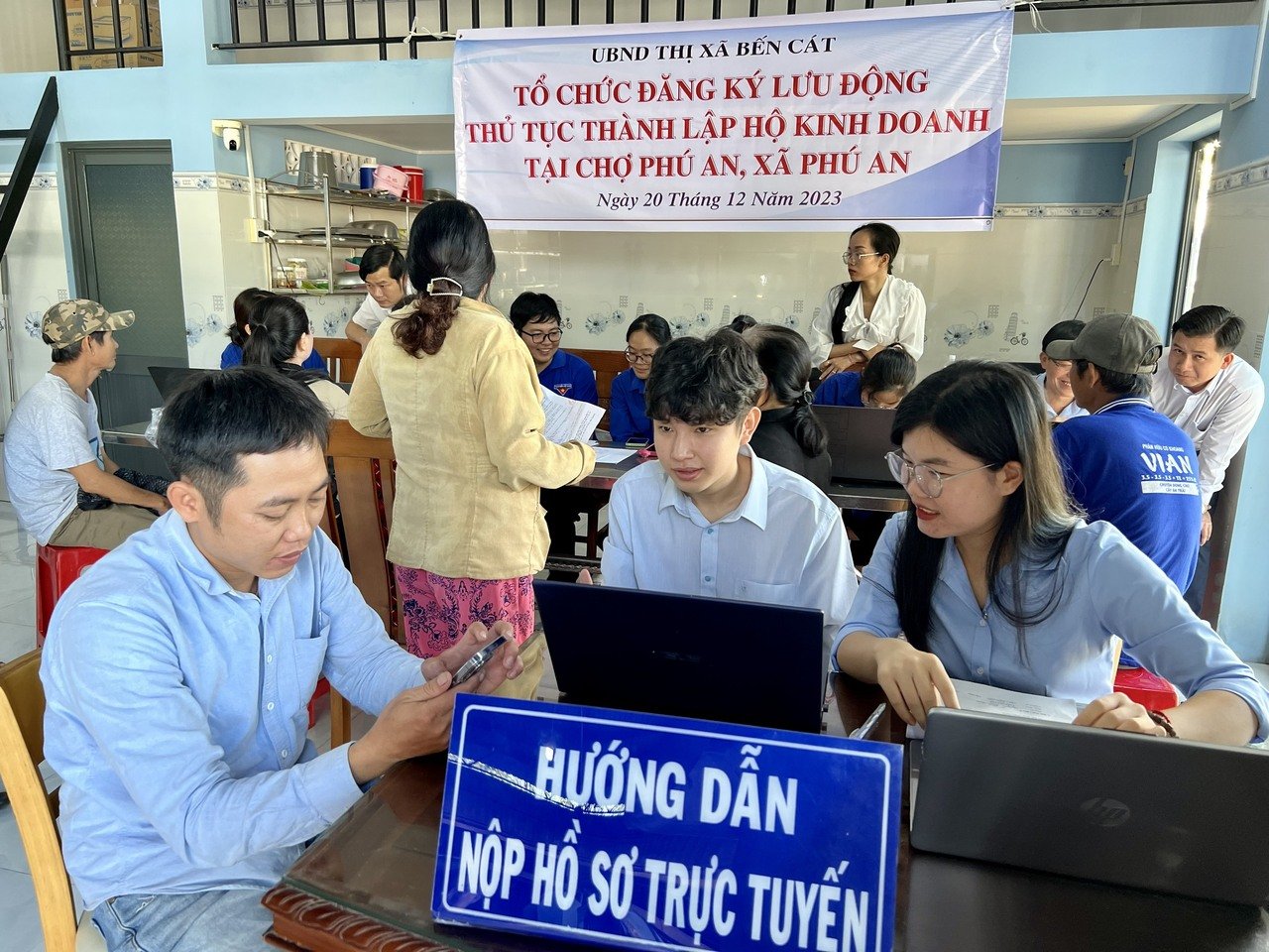 Ngày 20/12, thị xã Bến Cát đã tổ chức đăng ký lưu động thủ tục đăng ký thành lập hộ kinh doanh cho các hộ kinh doanh tại chợ Phú An, xã Phú An.