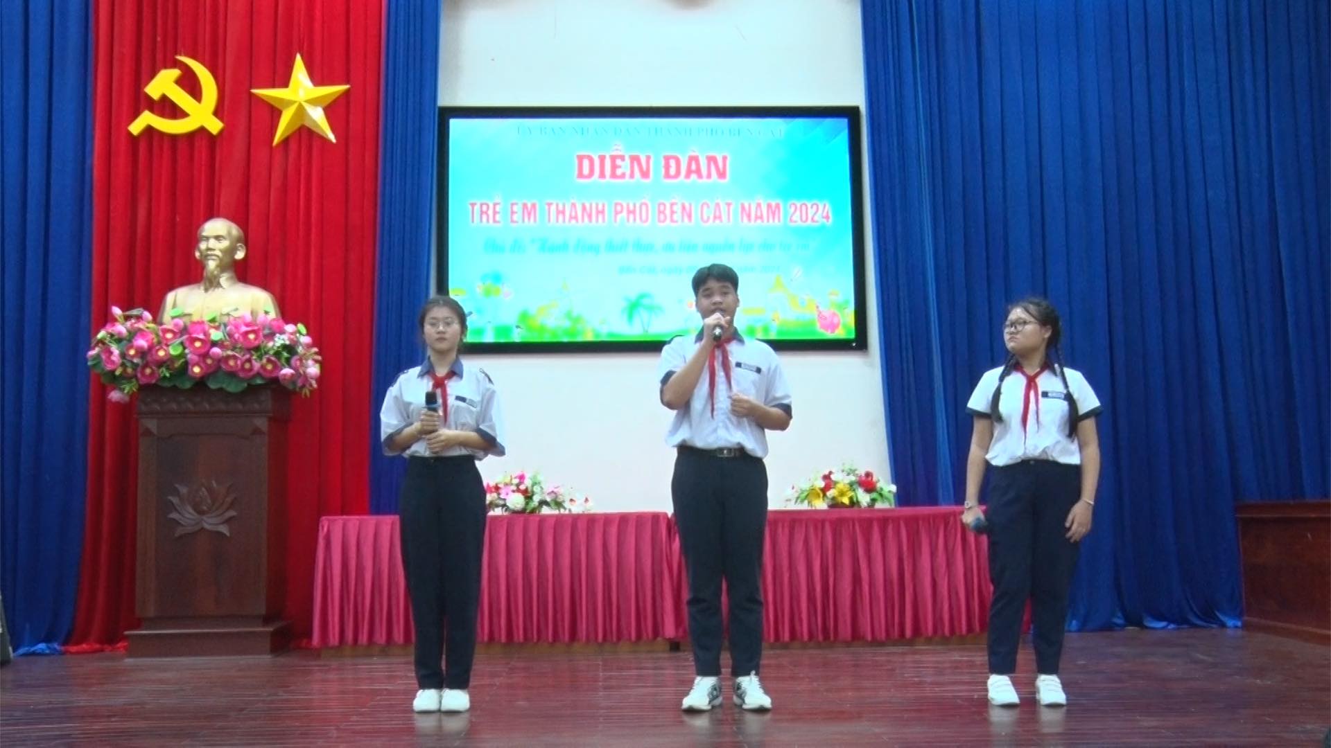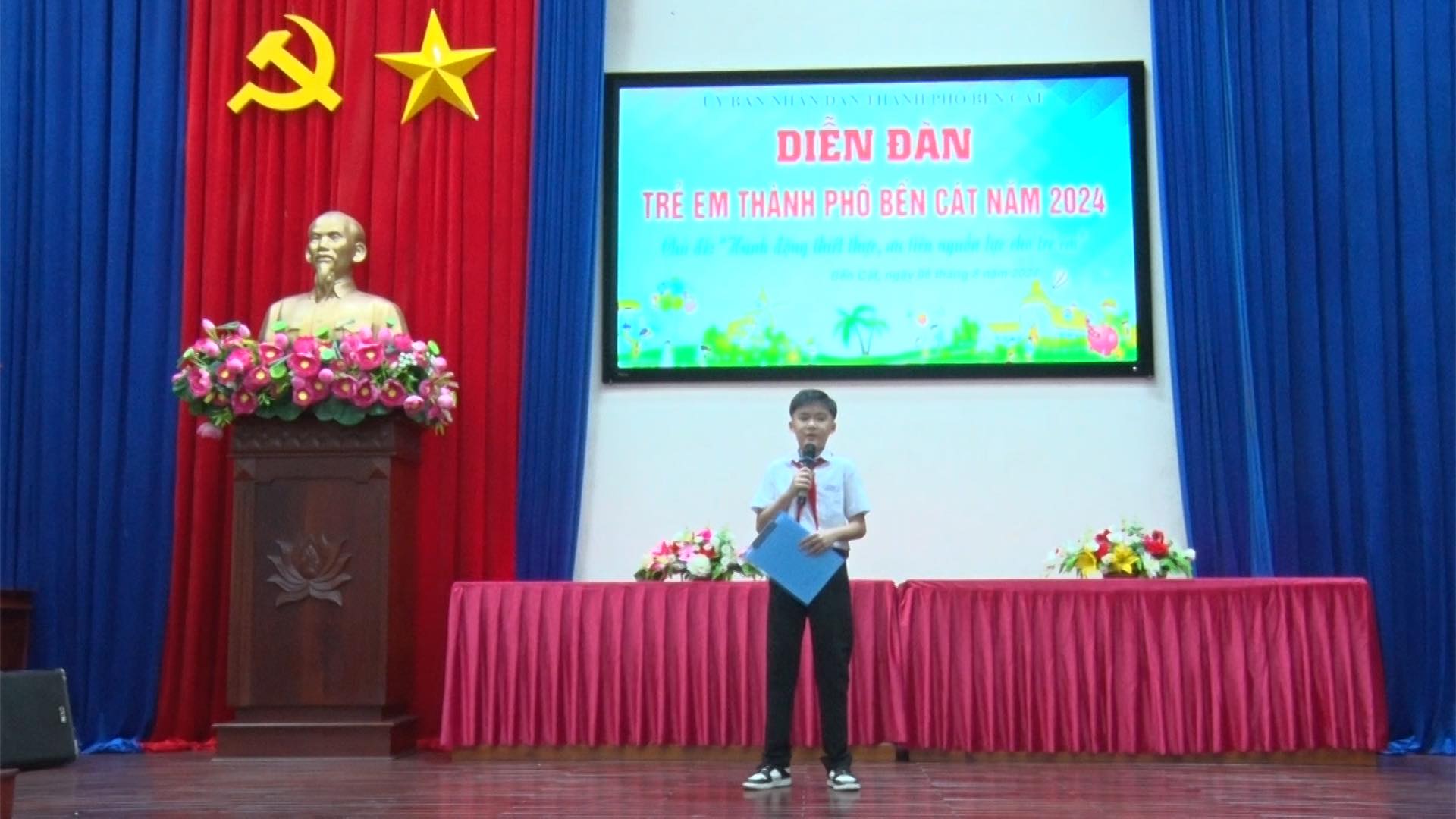 Ngày 08/8, thành phố Bến Cát tổ chức Diễn đàn trẻ em với chủ đề “Hành động thiết thực, ưu tiên nguồn lực cho trẻ em” năm 2024. Tham gia hội nghị có đại diện lãnh đạo các ban, ngành, đoàn thể, đại biểu HĐND thành phố cùng gần 100 em học sinh của các trường THCS trên địa bàn.