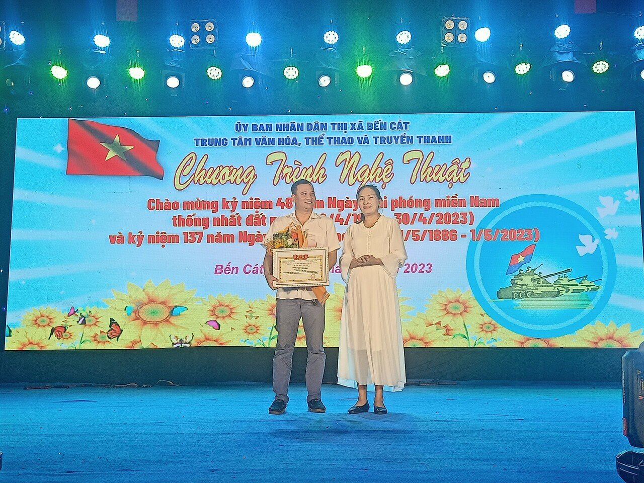 Thiết thực chào mừng kỷ niệm 48 năm ngày Giải phóng miền Nam, thống nhất đất nước (30/4/1975-30/4/2023) và Quốc tế lao động 1/5, tối 27/4, Trung tâm Văn hóa, Thể thao và Truyền thanh thị xã Bến Cát tổ chức biểu diễn chương trình văn nghệ phục vụ nhân dân toàn thị xã.