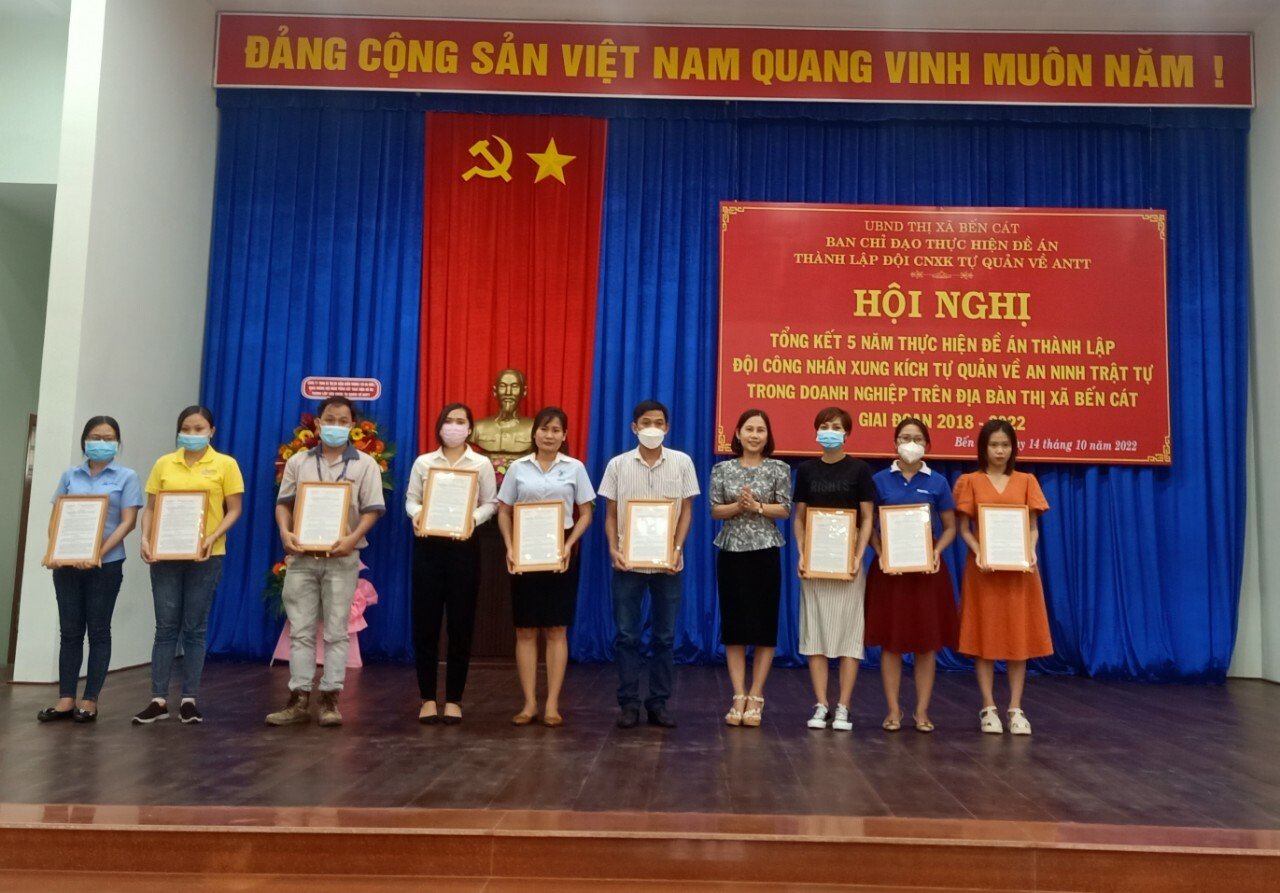Bến Cát tổng kết 05 năm thực hiện Đề án thành lập Đội công nhân xung kích tự quản về an ninh, trật tự trong doanh nghiệp