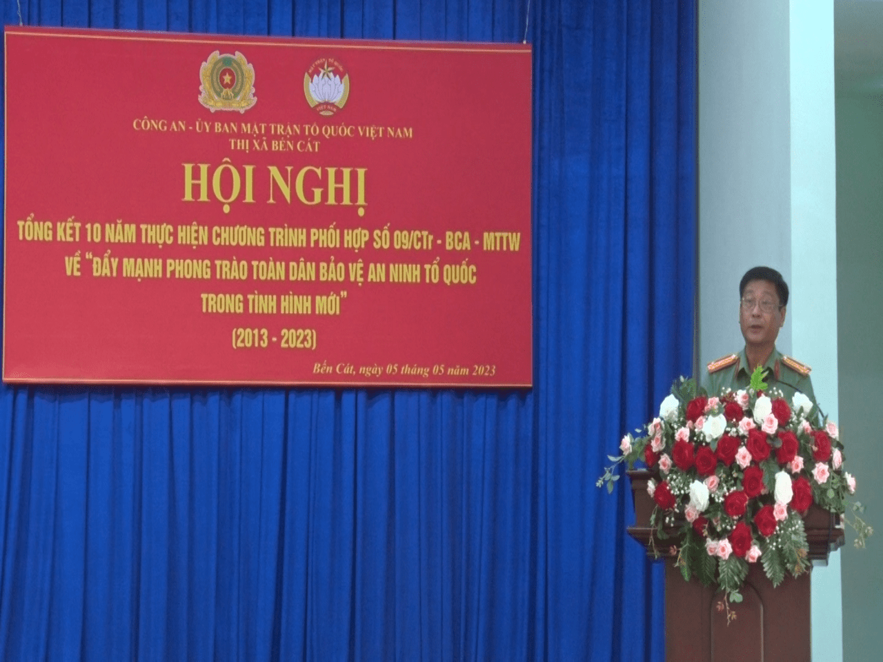 Thời gian qua, Công an thị xã Bến Cát phối hợp cùng Ủy ban MTTQ Việt Nam thị xã thực hiện tốt Chương trình 09 thông qua việc phát động phong trào toàn dân bảo vệ an ninh Tổ quốc gắn với các phong trào cách mạng tại địa phương. Kết quả, Ủy ban MTTQ Việt Nam thị xã đã phát động trên 1.800 cuộc với hơn 45.000 lượt cán bộ, đoàn viên và nhân dân tham gia. Công an thị xã viết hơn 500 bài tuyên truyền, phát hơn 1.600 móc khóa, gần 41.000 tờ rơi. Nội dung các cuộc phát động tập trung vào công tác tuyên truyền, vận động người dân chấp hành tốt các quy định pháp luật và chung tay bảo vệ an ninh trật tự trên địa bàn; phương thức, thủ đoạn hoạt động mới của các loại tội phạm, vận động thu gom vũ khí, công cụ hỗ trợ, vật liệu nổ, tuyên truyền kiến thức an toàn PCCC, huấn luyện kỹ năng chữa cháy, cứu nạn, cứu hộ, tuyên truyền phòng, chống dịch Covid-19... Qua đó, xuất hiện nhiều gương điển hình tiên tiến, các mô hình hay như Câu lạc bộ Phòng, chống tội phạm; Đội Công nhân xung kích tự quản về an ninh trật tự trong doanh nghiệp; Câu lạc bộ Chủ nhà trọ… góp phần bảo vệ bình yên tại địa phương.
