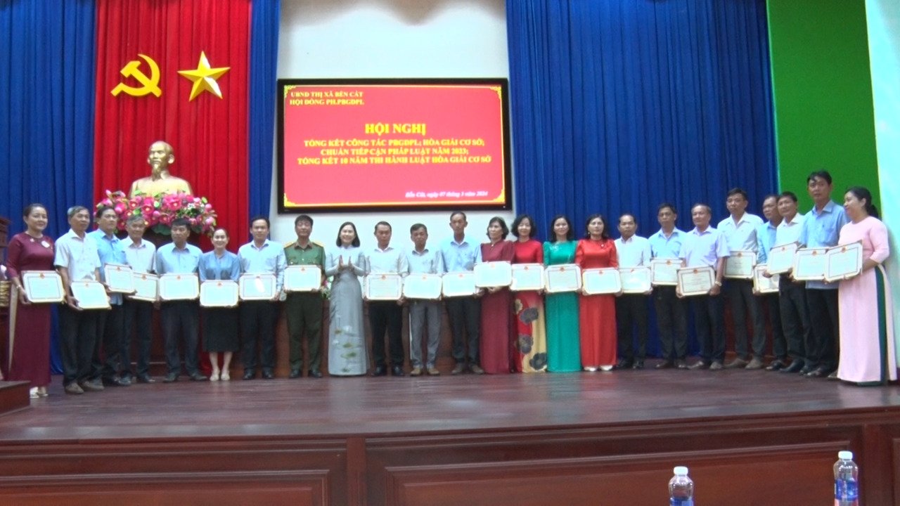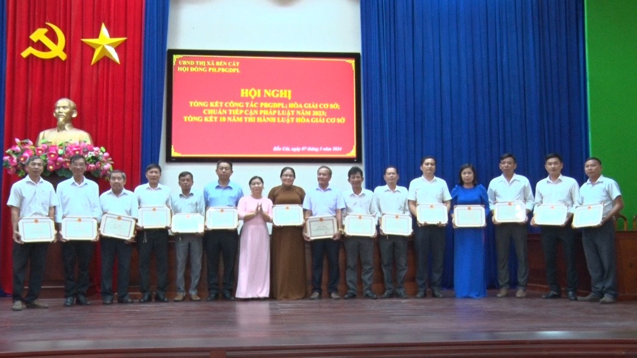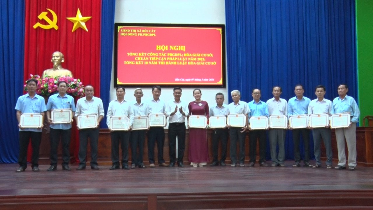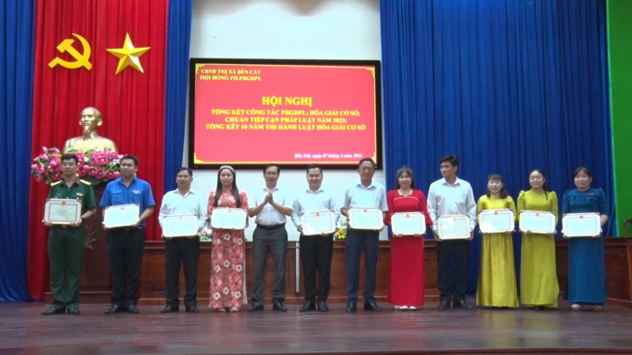 Dịp này, UBND thị xã Bến Cát đã khen thưởng cho 28 tập thể và 52 cá nhân đạt thành tích xuất sắc trong công tác phổ biến giáo dục pháp luật; Hòa giải cơ sở; Chuẩn tiếp cận pháp luật năm 2023.