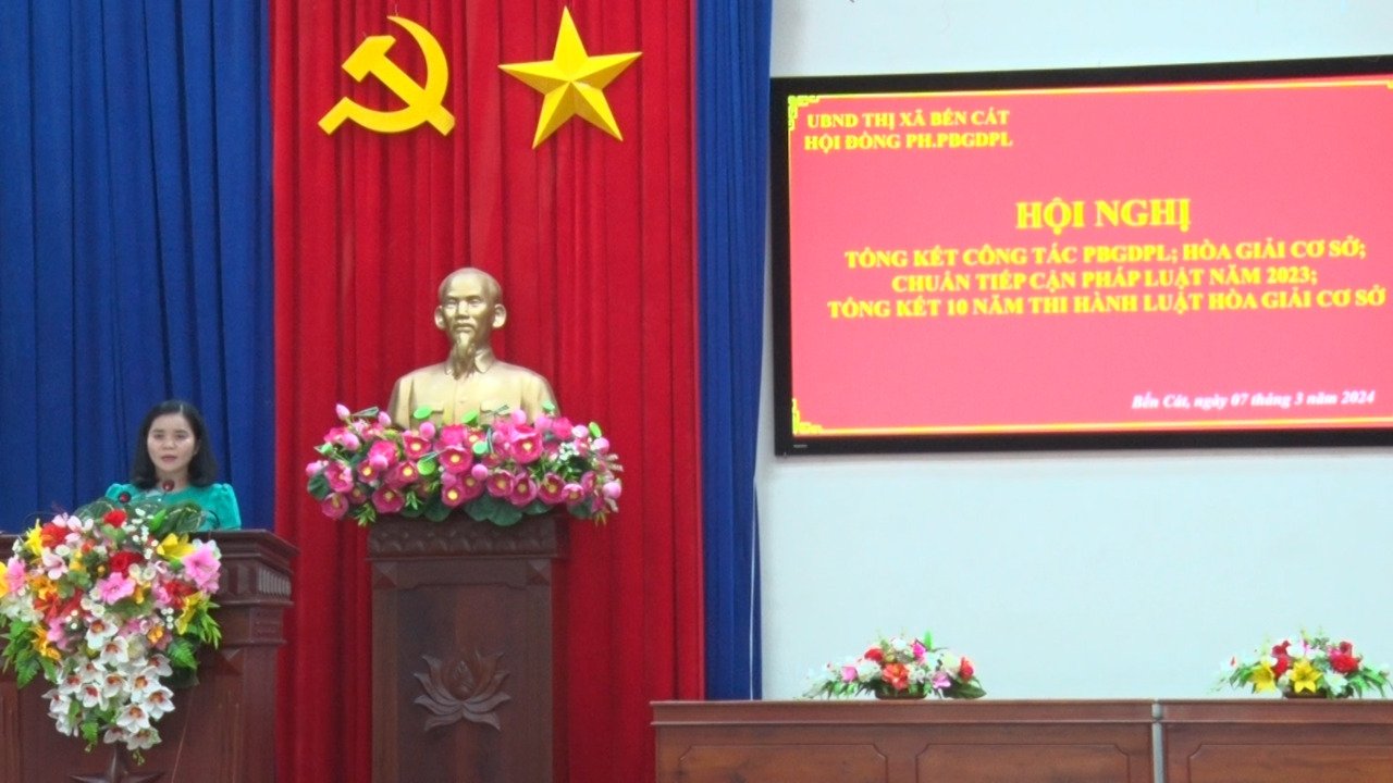 Bến Cát Tổng kết công tác PBGDPL, Hòa giải cơ sở, chuẩn tiếp cận pháp luật năm 2023; Tổng kết 10 năm Thi hành luật hòa giải cơ sở