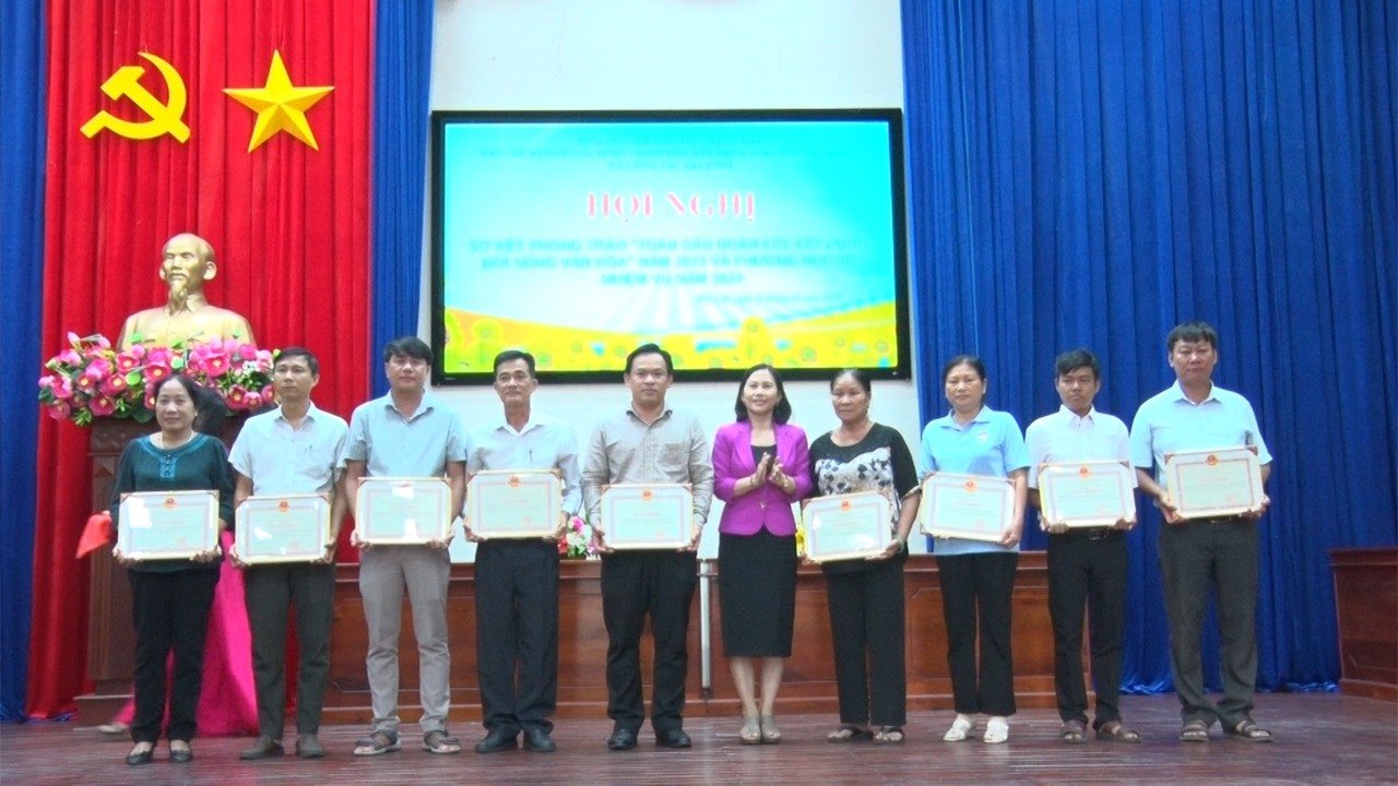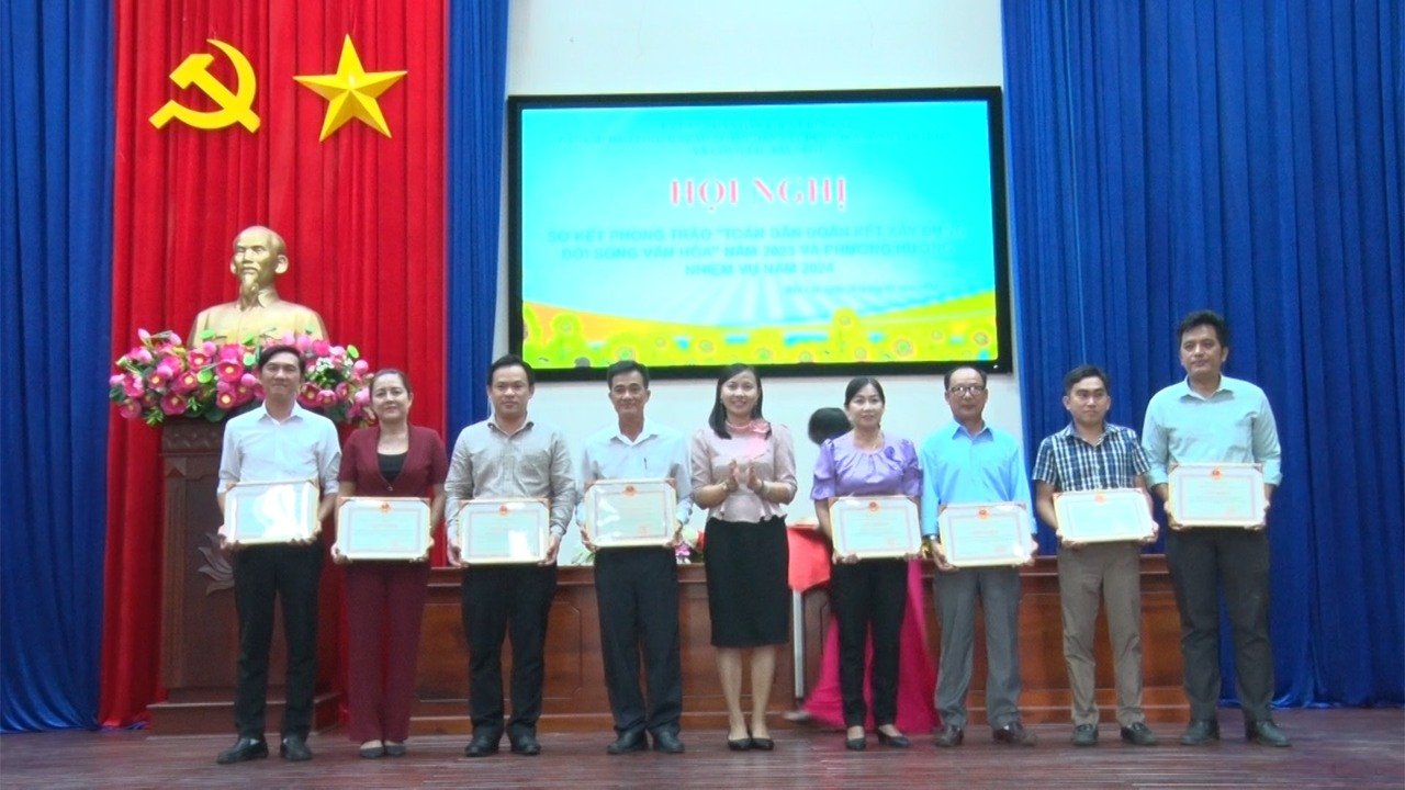 Dịp này, Ban chỉ đạo đề nghị khen thưởng 24 tập thể, 65 hộ gia đình, 30 cá nhân, 52 chủ nhà trọ và 08 khu phố, ấp có thành tích xuất sắc trong phong trào “Toàn dân đoàn kết xây dựng đời sống văn hóa”.