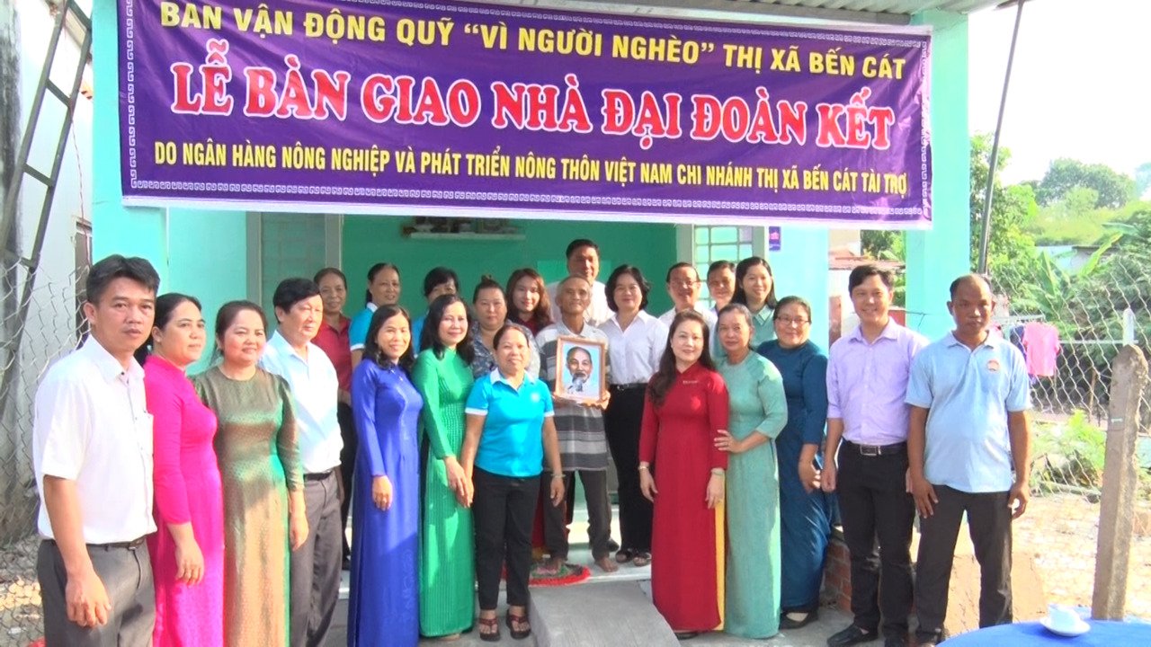 Căn nhà thứ ba được trao cho ông Nguyễn Văn Bảy ngụ ấp An Thuận có diện tích 44m2, nền lát gạch men, tường tô, máy tôn với tổng kinh phí 100 triệu đồng, trong đó, 70 triệu đồng do Ngân hàng Nông nghiệp và phát triển nông thôn chi nhánh thị xã Bến Cát tài trợ, phần còn lại trích Quỹ người nghèo thị xã.