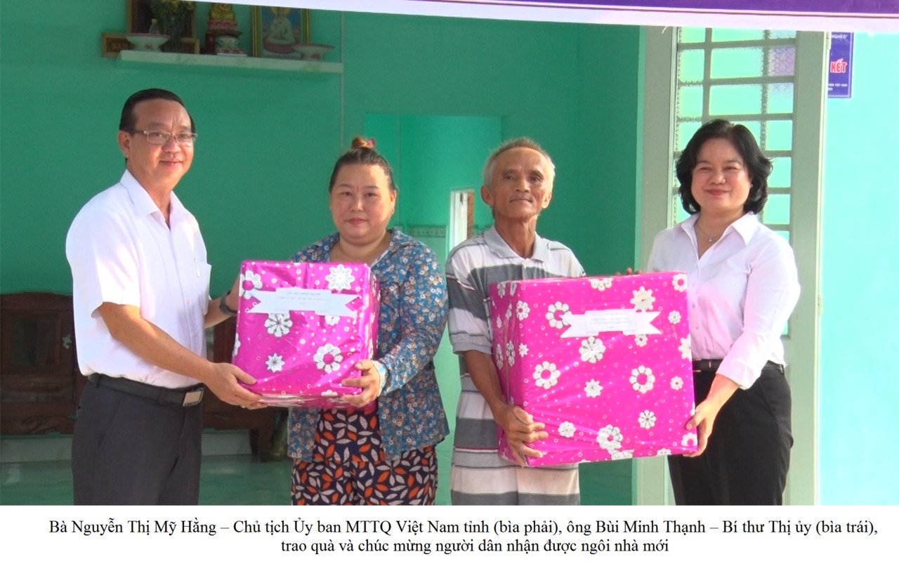 Ngoài ra, các gia đình còn nhận được nhiều phần quà thiết thực và các vật dụng từ lãnh đạo tỉnh, thị xã, địa phương, đơn vị tài trợ và người dân trong ấp.