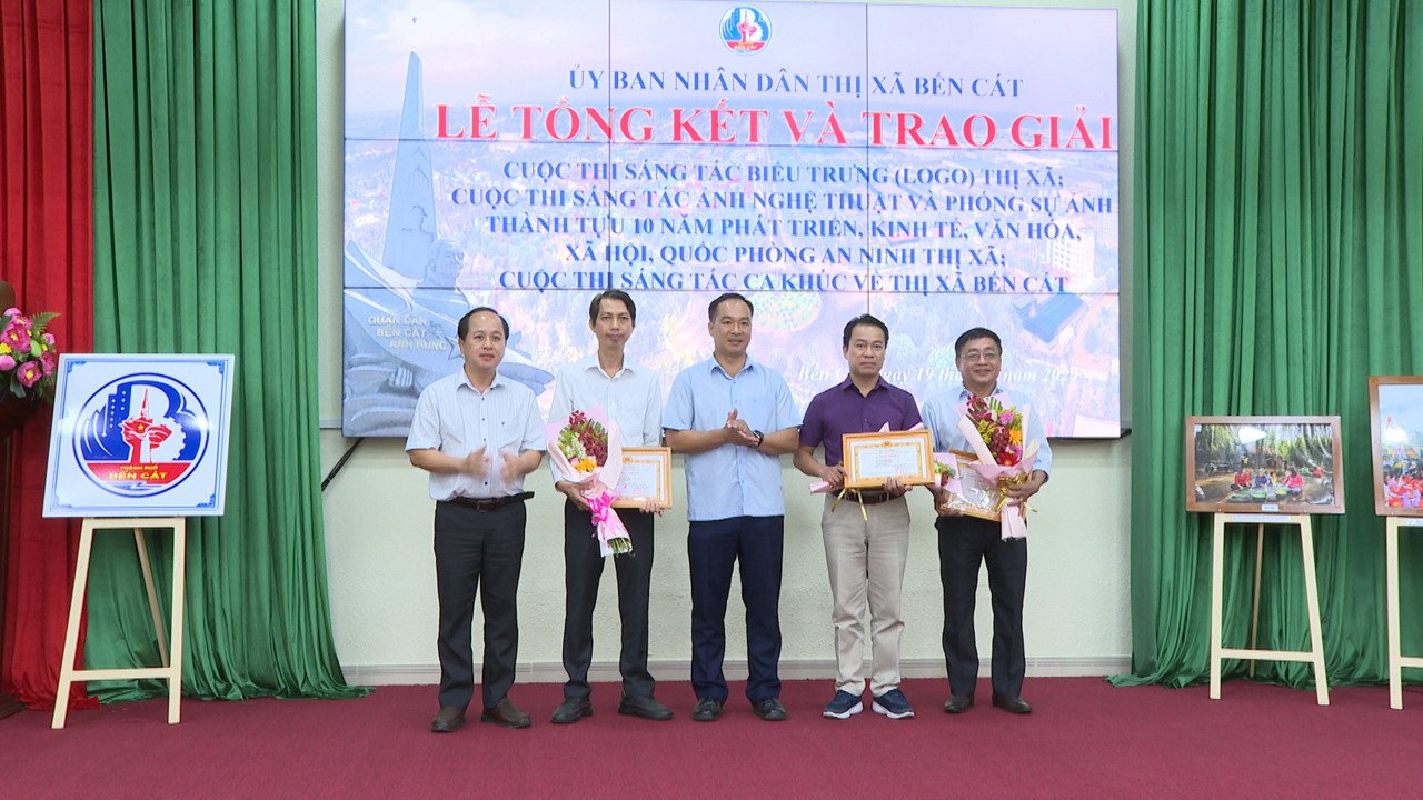 Bến Cát trao giải cuộc thi sáng tác biểu trưng (logo) thị xã; Cuộc thi sáng tác ảnh nghệ thuật và phóng sự ảnh thành tựu 10 năm phát triển, kinh tế, văn hóa, xã hội, quốc phòng an ninh thị xã và Cuộc thi sáng tác ca khúc về Bến Cát...