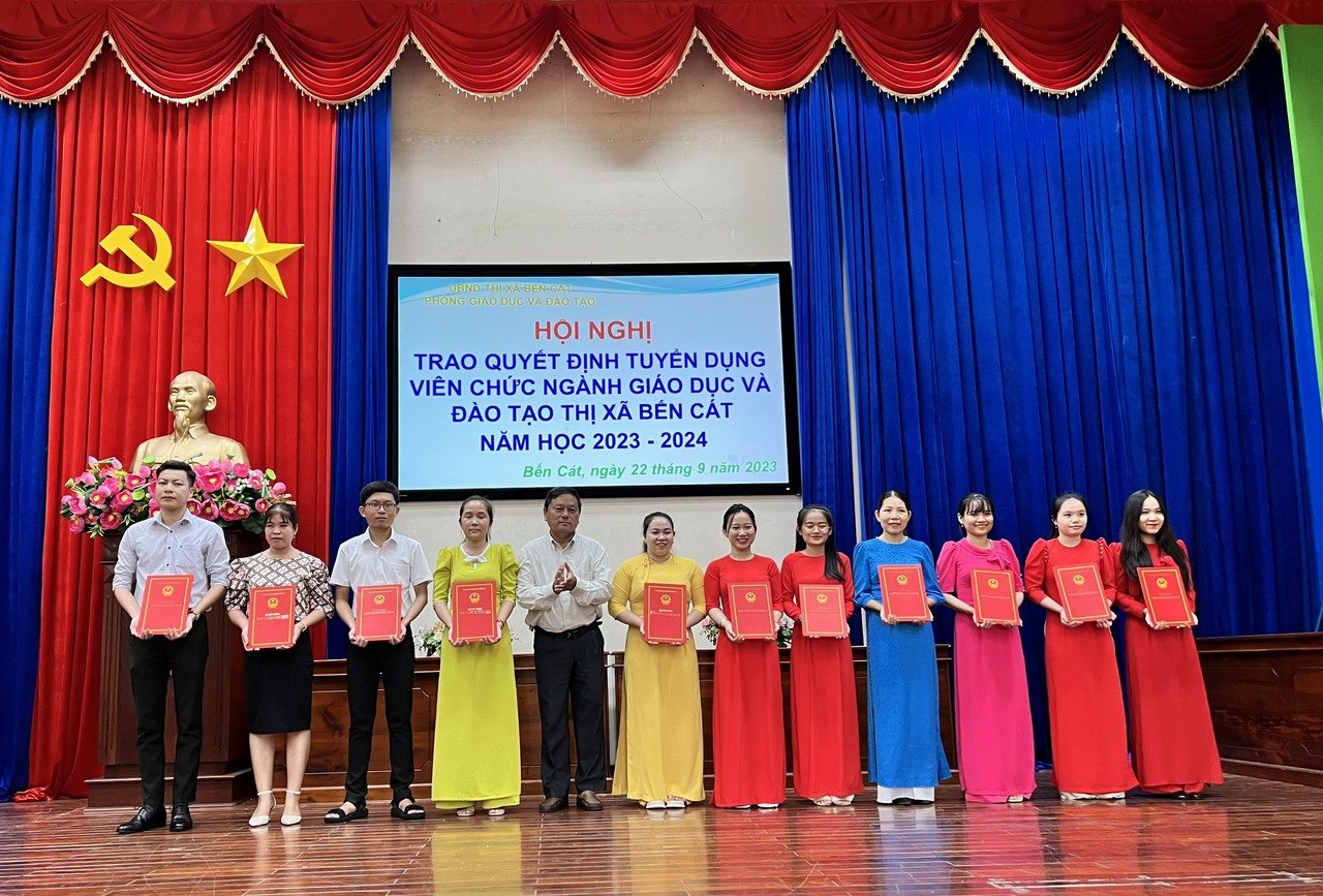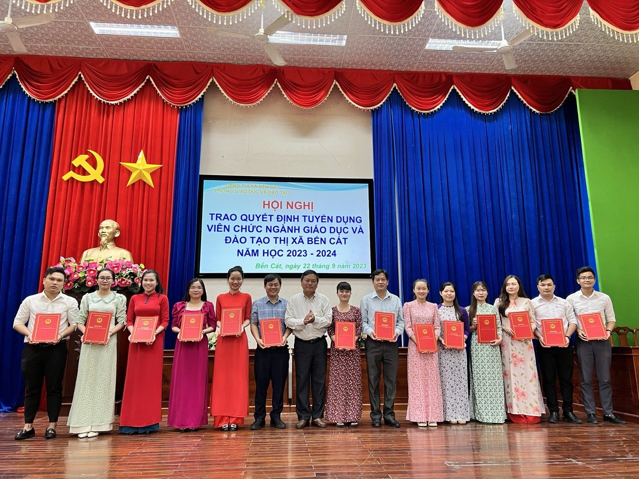 Phòng Giáo dục và Đào tạo thị xã Bến Cát vừa tổ chức hội nghị trao quyết định tuyển dụng viên chức ngành Giáo dục và Đào tạo năm học 2023-2024.
