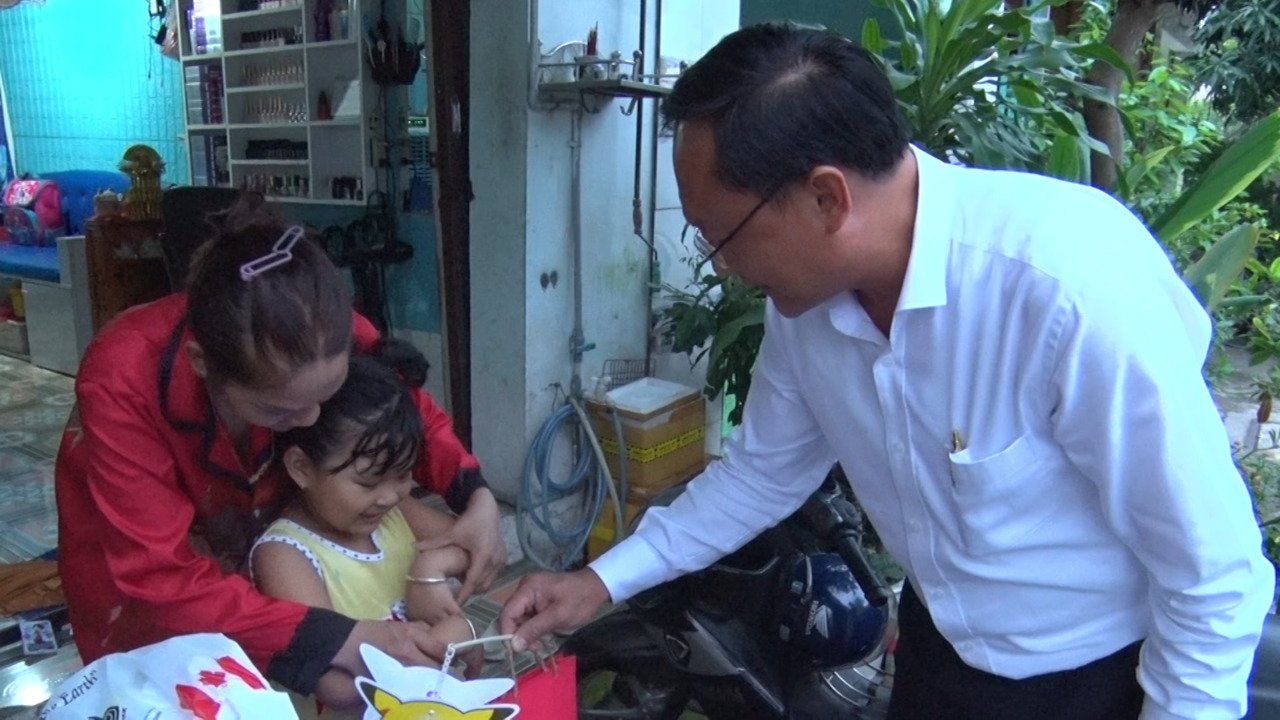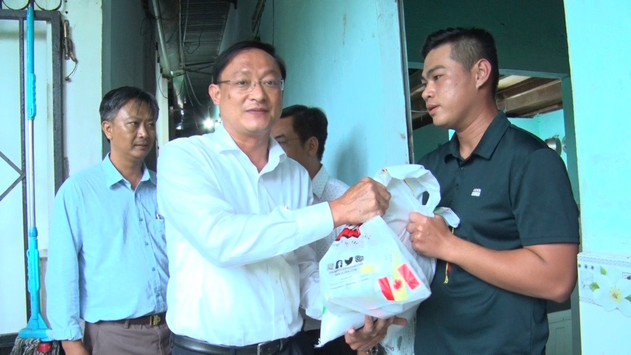 Theo đó, đoàn đã đến thăm hỏi, động viên và tặng 40 quà cho công nhân lao động tại một số khu nhà trọ thuộc khu phố 3B, phường Thới Hòa, mỗi phần trị giá 500 ngàn đồng gồm gạo, đường, sữa các nhu yếu phẩm thiết yếu và tập trắng cho học sinh là con công nhân lao động.
