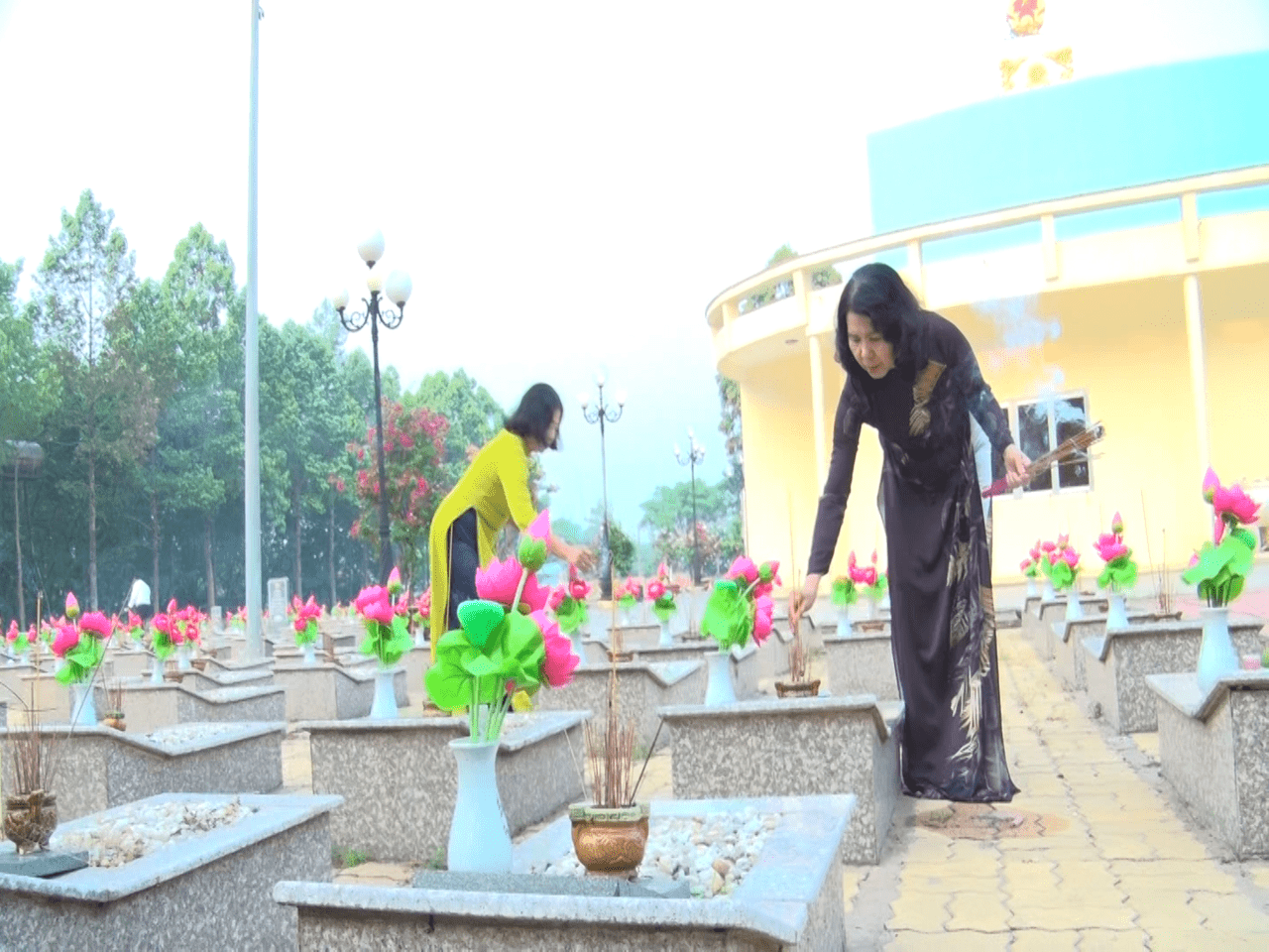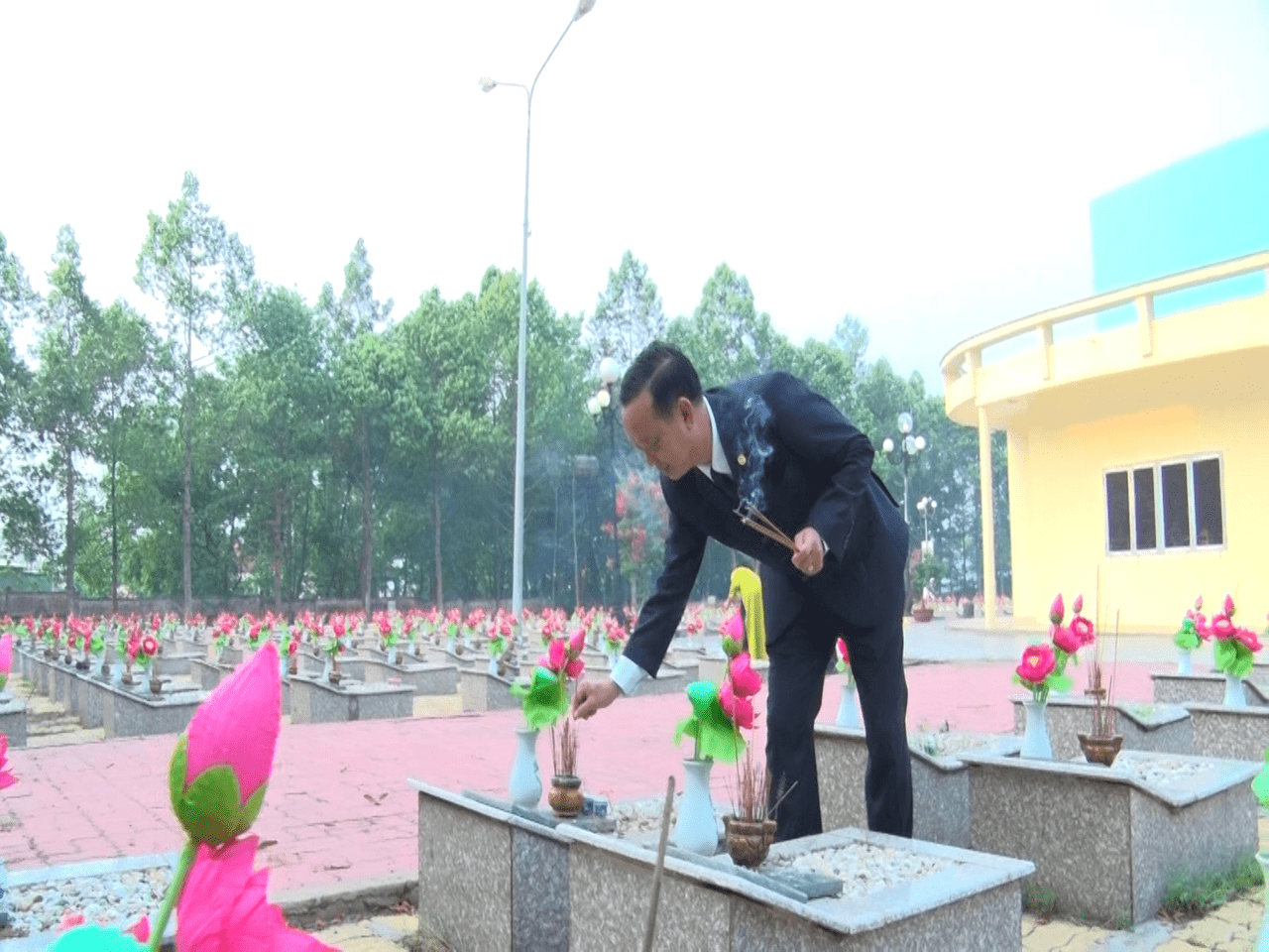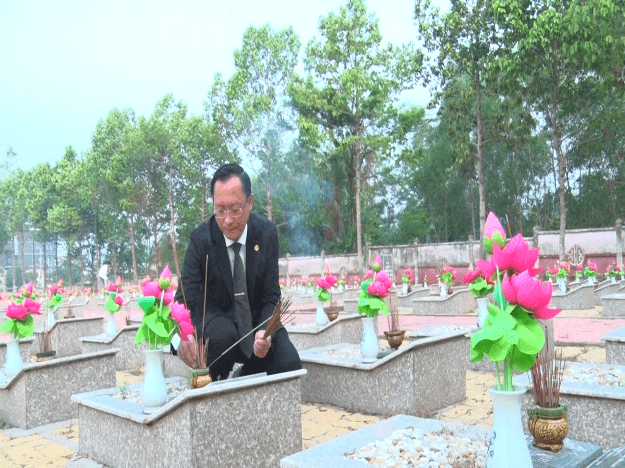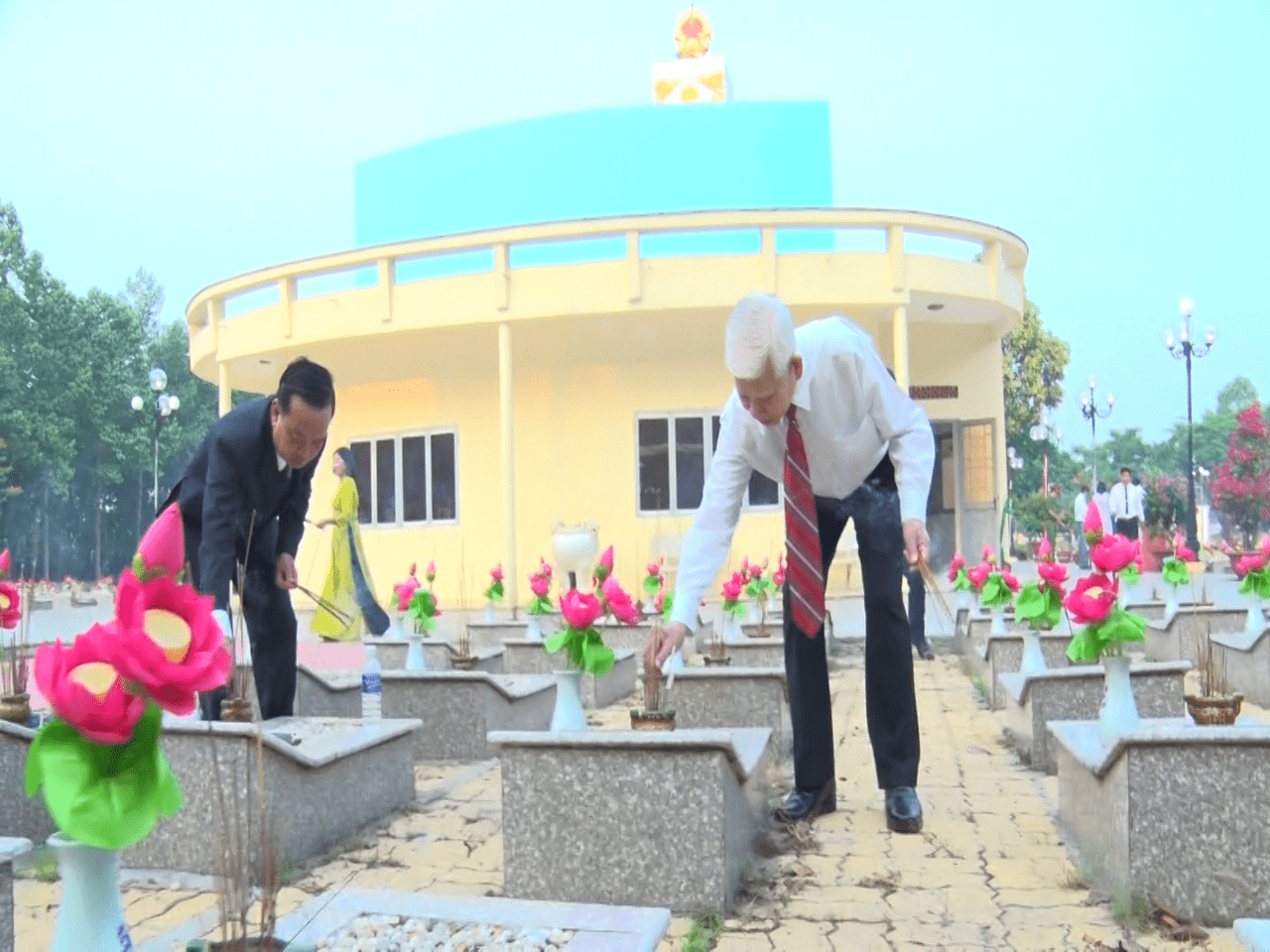 Sau lễ viếng, các đại biểu đã đến thắp hương trên từng phần mộ liệt sĩ.