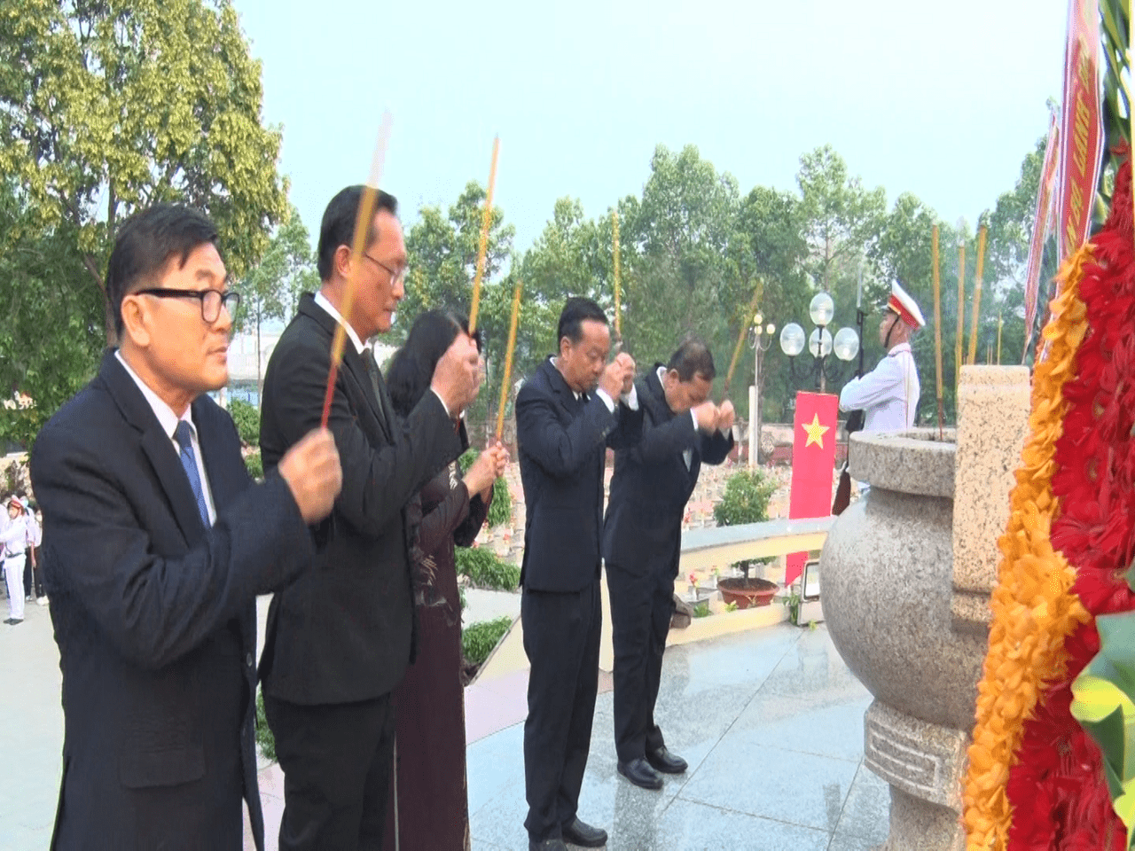 Tại lễ viếng, với lòng thành kính tri ân, các đồng chí lãnh đạo đã dâng hương và dâng hoa lên tượng đài Tổ quốc ghi công, đồng thời dành một phút mặc niệm tưởng nhớ đến công lao của Chủ tịch Hồ Chí Minh kính yêu và các anh hùng liệt sĩ đã hi sinh xương máu vì độc lập, tự do của dân tộc.